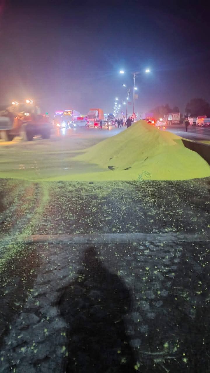 وفور تلقى بلاغ بوقوع حادث على الطريق الزراعى أمام مدخل قرية كفر الشيخ إبراهيم، وانقلاب سيارة نقل محملة بمادة الكبريت، توجه الدكتور مصطفى صعوان، نائب رئيس المدينة، إلى مكان الحادث، بتواجد قوات الأمن.