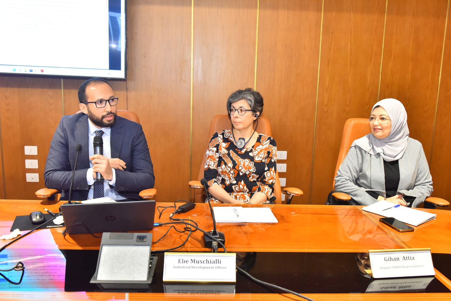 ترأس الوفد الدكتور نيكولاس زايميس، رئيس قسم الاستثمار والتجارة بمفوضية الاتحاد الأوروبي بالقاهرة، وضم ممثلين عن اليونيدو، ضم الوفد الدكتورة جيهان عطية نائب رئيس منظمة اليونيدو وايبى موسكيالي مديرة مشروع دعم الاتحاد الأوروبي للتجارة والصناعة والنمو والنفاذ السريع للأسواق - تجارة (TIGARA) والدكتور أحمد كحلة، مدير تطوير التكتلات الزراعية بوزارة التنمية المحلية، ووفد من خبراء اليونيد وممثلي مفوضية الاتحاد الأوربي وعدد من أعضاء السفارات الأوربية بالقاهرة وعددًا من ممثلي ووزارة التنمية المحلية، وخبراء المشروع مفوضية الاتحاد الأوروبي والسفارات الأوروبية بالقاهرة.