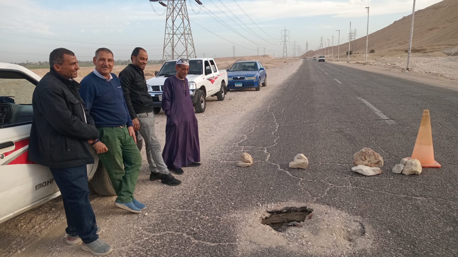 وكان طريق قنا المحروسة الصحراوى الغربى، شهد هبوط أرضى أمام قرية الدير الغربى، ما دفع عدد من المواطنين لتقديم شكاوى يتضررون فيها من هبوط بالطريق قد يؤدى لوقوع حوادث.