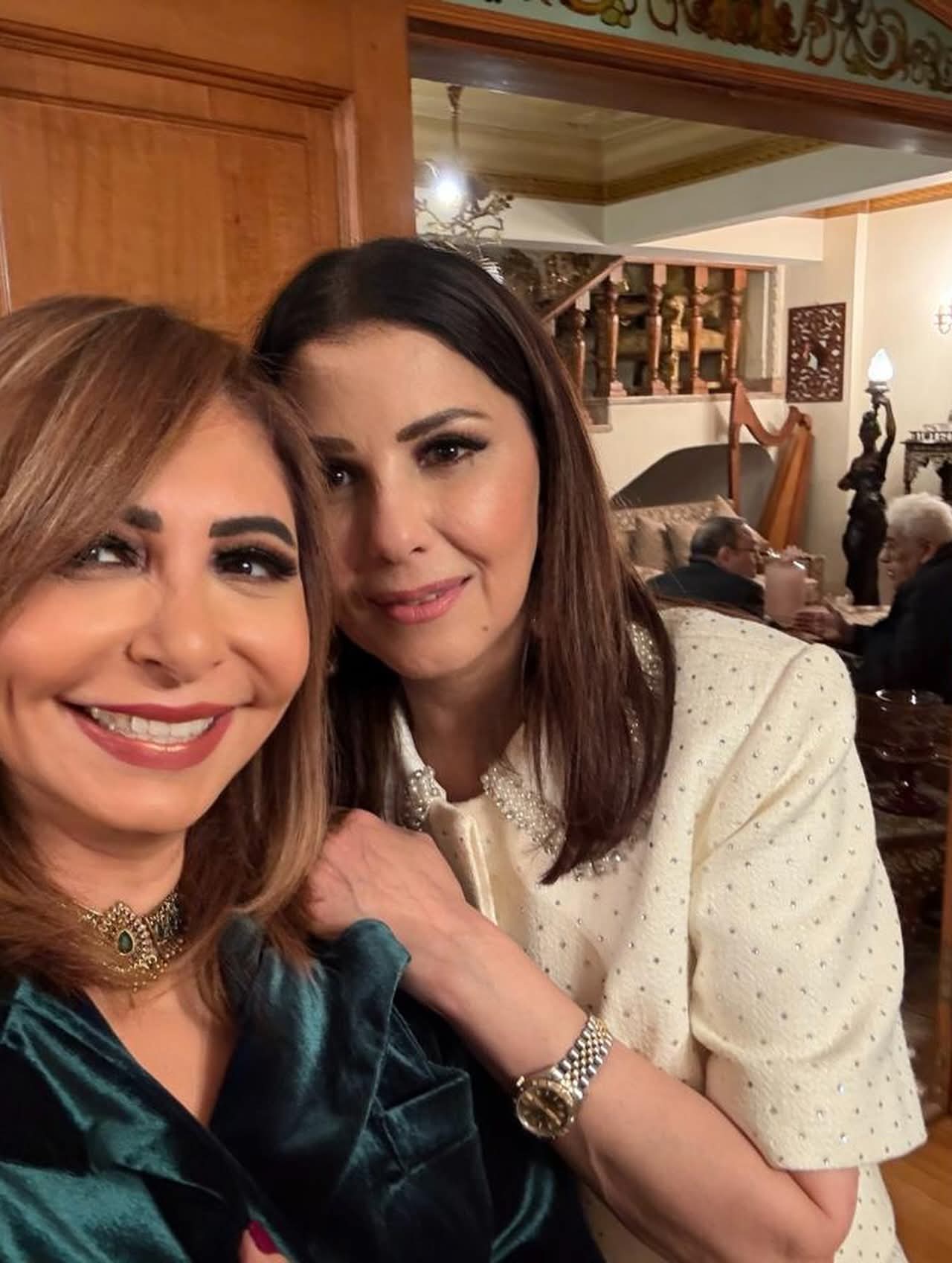 من ناحية أخرى حرصت الفنانة إلهام شاهين، على الترحيب بصديقتها المطربة ماجدة الرومي، التي وصلت إلى القاهرة مؤخرًا، في ضوء استعدادها لإحياء حفل غنائي ضخم بدار الأوبرا المصرية.