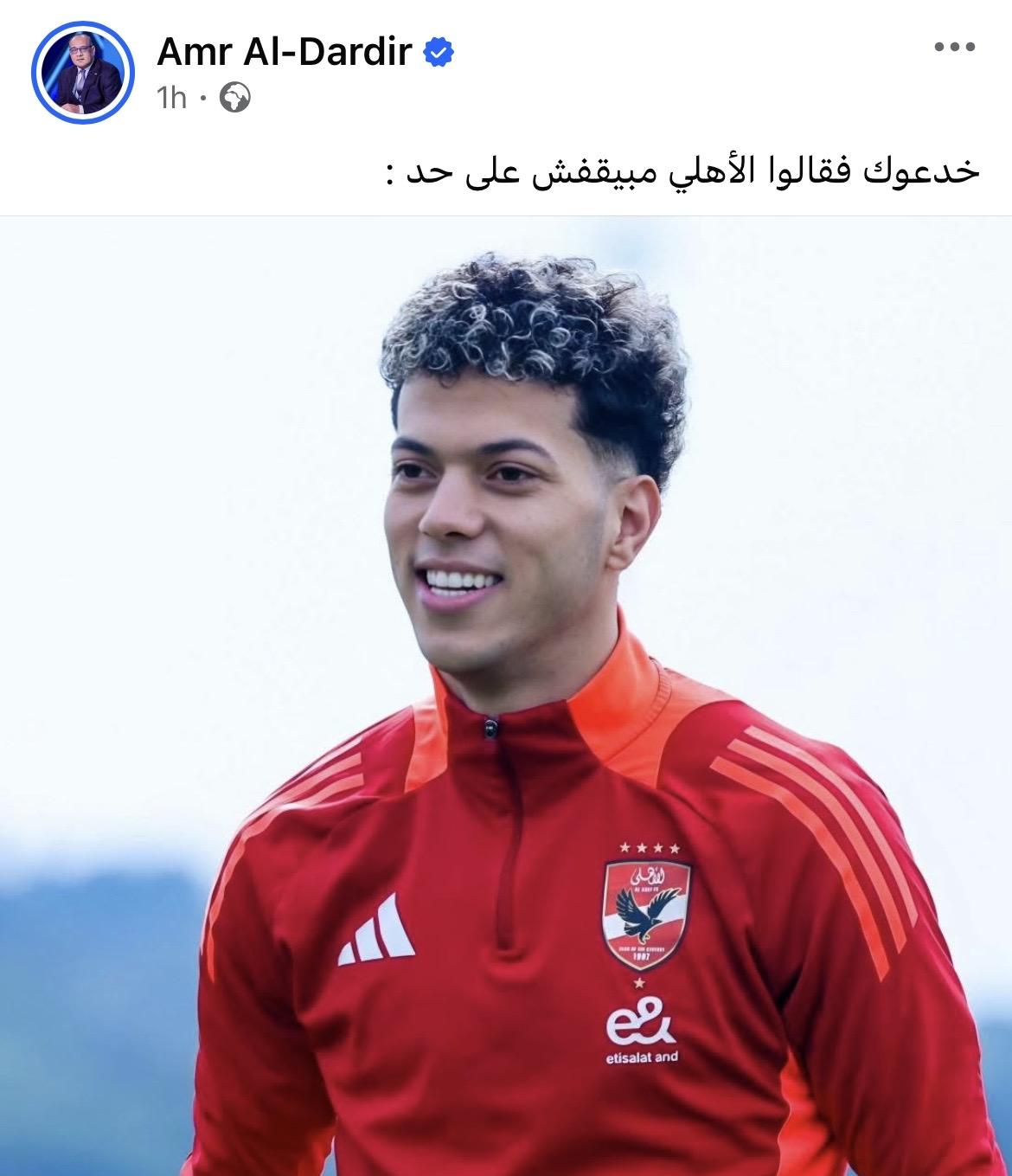 وكتب الدردير، عبر حسابه على “فيسبوك”: "خدعوك فقالوا الأهلي مبيقفش على حد".