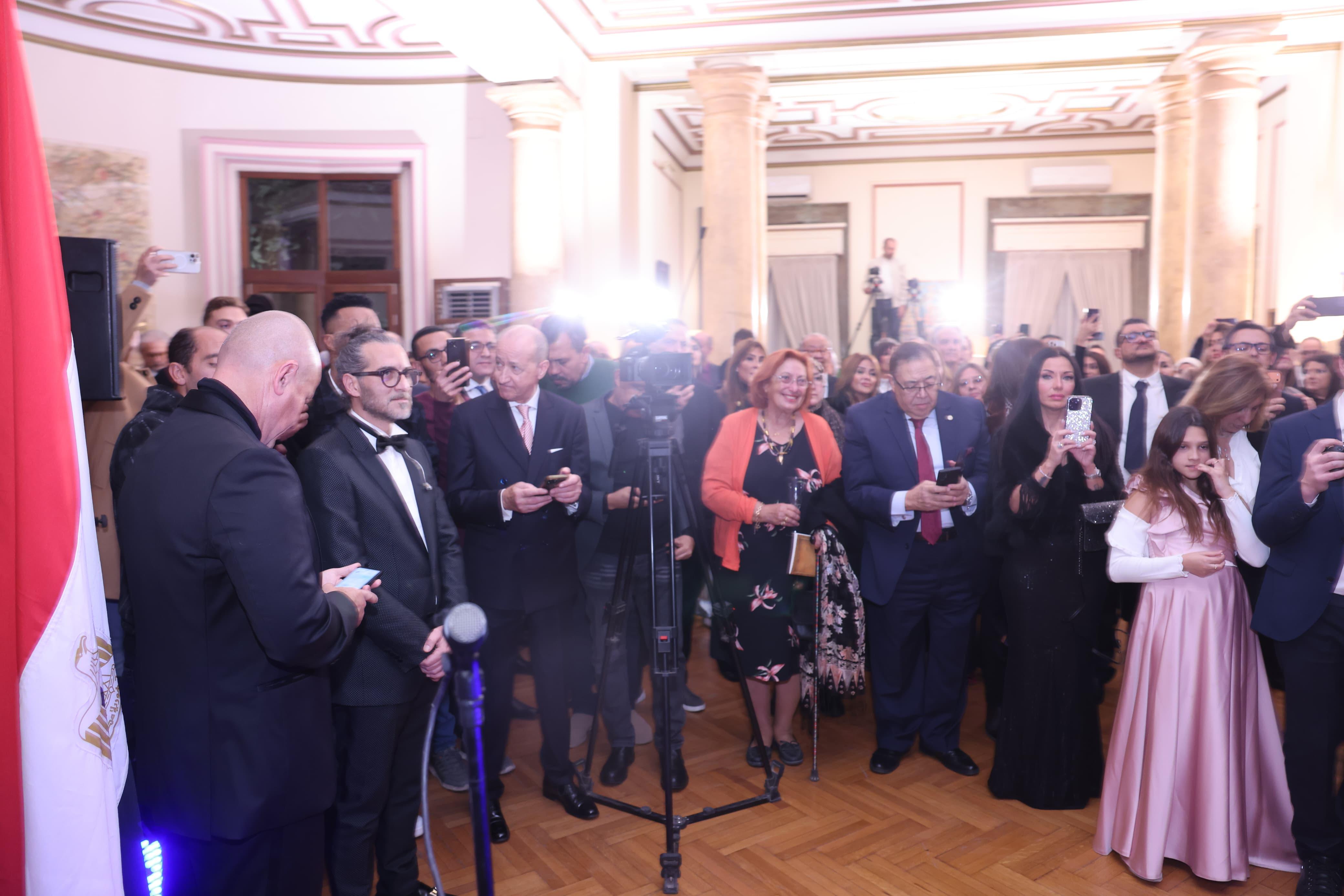 ورجل الأعمال نجيب ساويرس، والمهندس ابراهيم المعلم، وسفيرة الإتحاد الأوروبي ولفيف من السفراء والصحفيين والإعلاميين.