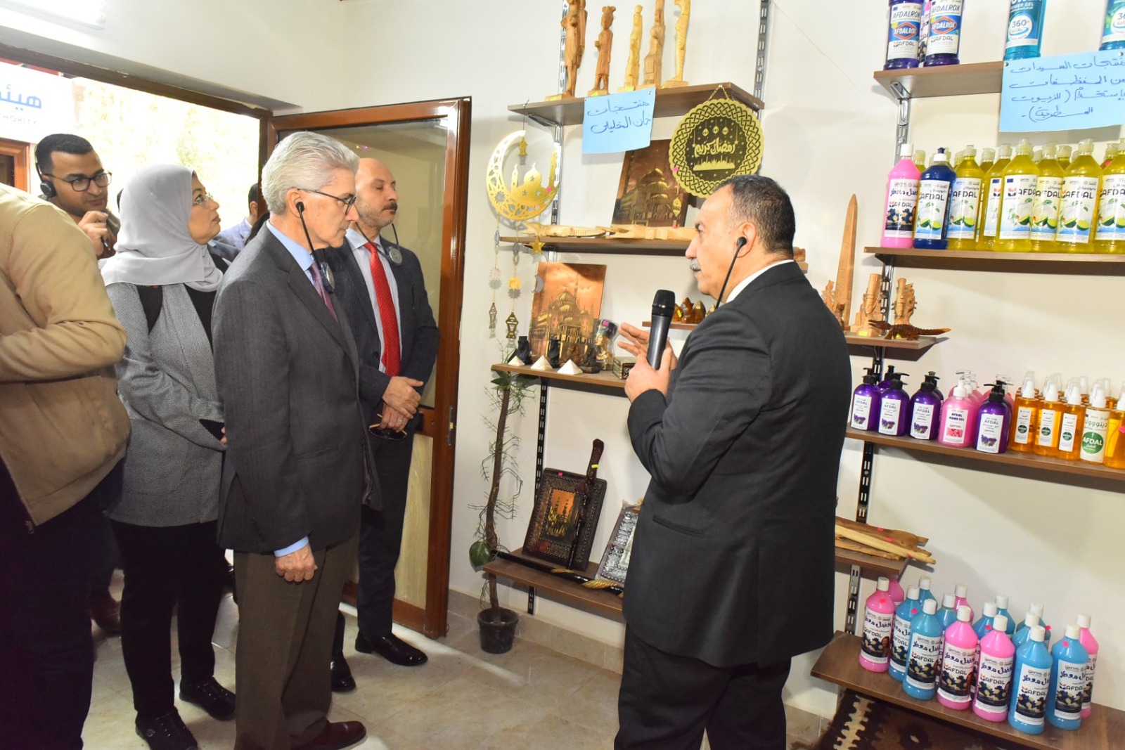 واصل اللواء دكتور هشام أبو النصر، محافظ أسيوط، جولاته التفقدية برفقه وفد رفيع المستوى من مشروع "دعم الاتحاد الأوروبي للتجارة والصناعة – تجارة TIGARA"، برئاسة الدكتور نيكولاس زايميس، رئيس قسم الاستثمار والتجارة بمفوضية الاتحاد الأوروبي بالقاهرة، وبمشاركة ممثلين عن منظمة الأمم المتحدة للتنمية الصناعية (اليونيدو) ووزارة التنمية المحلية حيث زار بازار "كيان" الكائن أسفل كوبري فيصل بحي غرب، للاطلاع على تجربة المحافظة في تحويل المواقع غير المستغلة إلى وحدات إنتاجية تدعم الشباب والأسر المنتجة.
