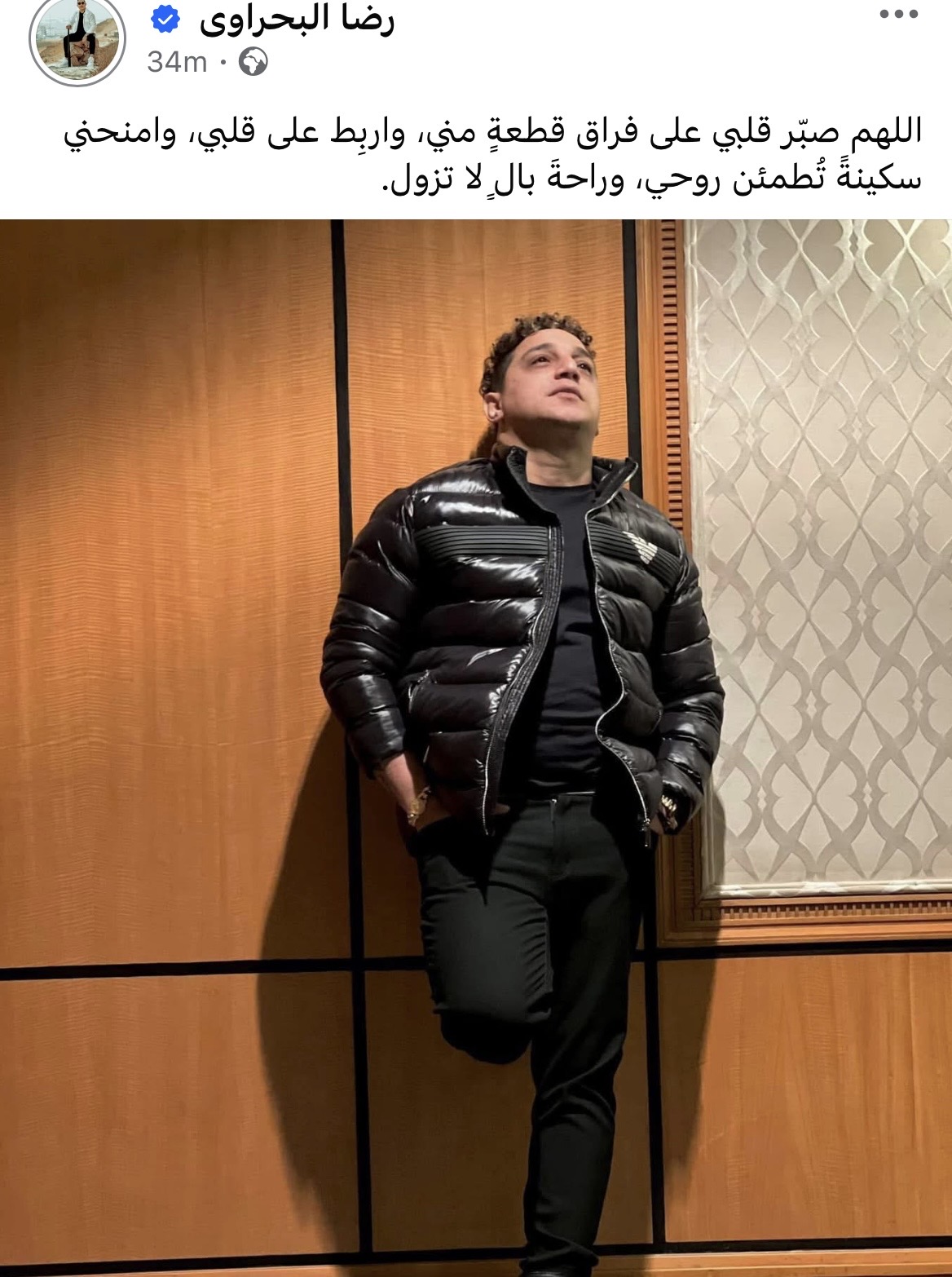 شارك المطرب الشعبي رضا البحراوي، منشورا جديد عبر حسابه الشخصي على فيسبوك، معربا عن حزنه لفراق والدته.