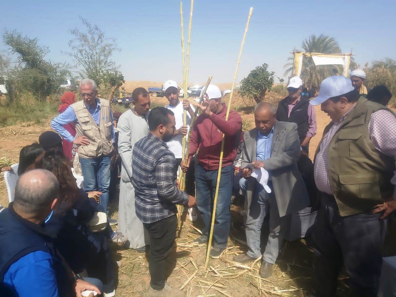وخلال الجولة الميدانية قام نائب المحافظ ومرافقوه بتفقد عدد من الأنشطة التطبيقية للمشروع شملت مشاهدة مراحل حصاد حقل مدرسة قصب السكر المزروع بالشتل بقرية الآمال ، وتفقد مشتل نخيل الأصناف المحلية ، وكذا زيارة حقل زراعة فسائل النخيل بالقرية فى إطار دعم الممارسات الزراعية الحديثة وتحسين الإنتاجية الزراعية بإستخدام أساليب صديقة للبيئة .