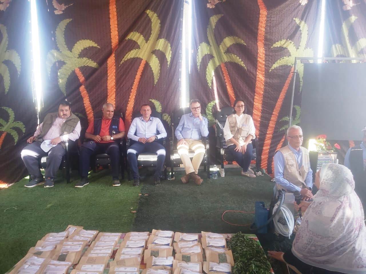 وفى ختام الزيارة شارك نائب المحافظ والسفير الكندى وممثلو الفاو فى حفل تخرج عدد (2) مدرسة نخيل ، حيث تم توزيع هدايا تشجيعية على المتخرجين والنخالين تأكيداً على أهمية بناء القدرات المحلية وتمكين المزارعين ، ودعم إستدامة الموارد الزراعية بما يحقق أهداف التنمية المستدامة ورؤية مصر 2030.