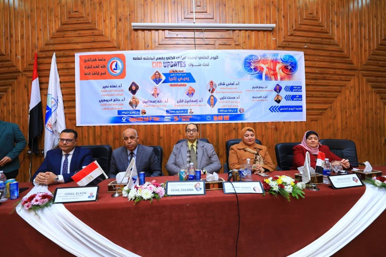 جاء ذلك بحضور الدكتور إسماعيل إسماعيل إبراهيم نائب رئيس الجامعة للدراسات العليا والبحوث، والدكتور أماني شاكر نائب رئيس الجامعة لشئون خدمة المجتمع وتنمية البيئة، والدكتور علي أبو شوشة نائب رئيس جامعة كفر الشيخ الاهلية للشئون الاكاديمية، والدكتور طه إسماعيل عميد كلية الطب البشري، والدكتور نهلة نصير وكيل الكلية للدراسات العليا والبحوث، والدكتور حاتم الجوهري وكيل الكلية لشئون التعليم والطلاب، والدكتور وائل الفقي وكيل الكلية لشئون خدمة المجتمع وتنمية البيئة، والدكتور مدحت غازي رئيس قسم الأمراض الباطنة العامة ورئيس اليوم العلمي، بحضور نخبة من أساتذة أمراض الباطنة والكلى من جامعات الإسكندرية وطنطا، إلى جانب عدد كبير من أعضاء هيئة التدريس، والأطباء، وطلاب الدراسات العليا.