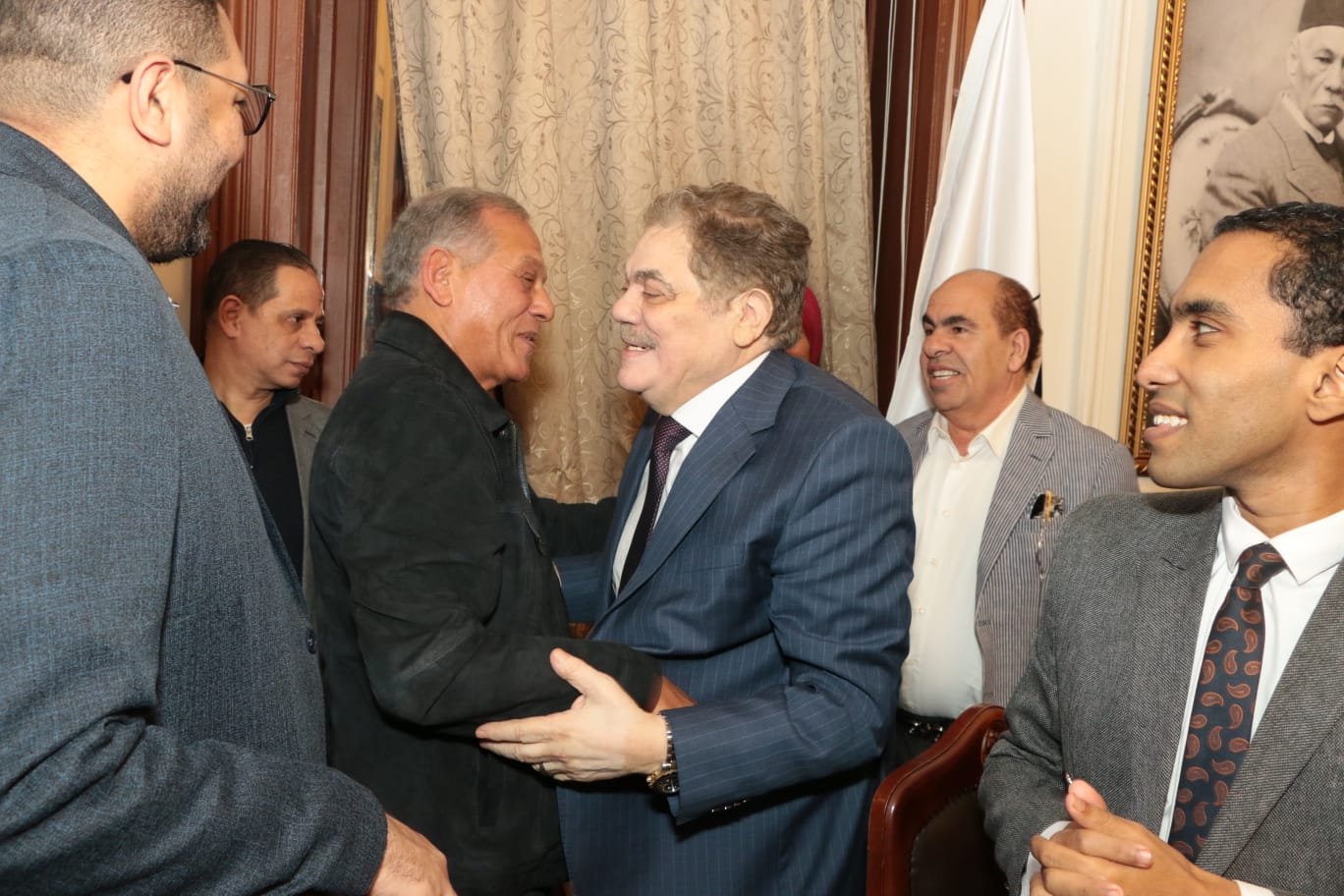 إستقبل الدكتور السيد البدوي شحاتة، رئيس حزب الوفد، محمد أنور السادات، رئيس حزب الإصلاح والتنمية، بمقر الحزب الرئيسي ،لتهنئته لإختياره رئيسا لحزب الوفد .