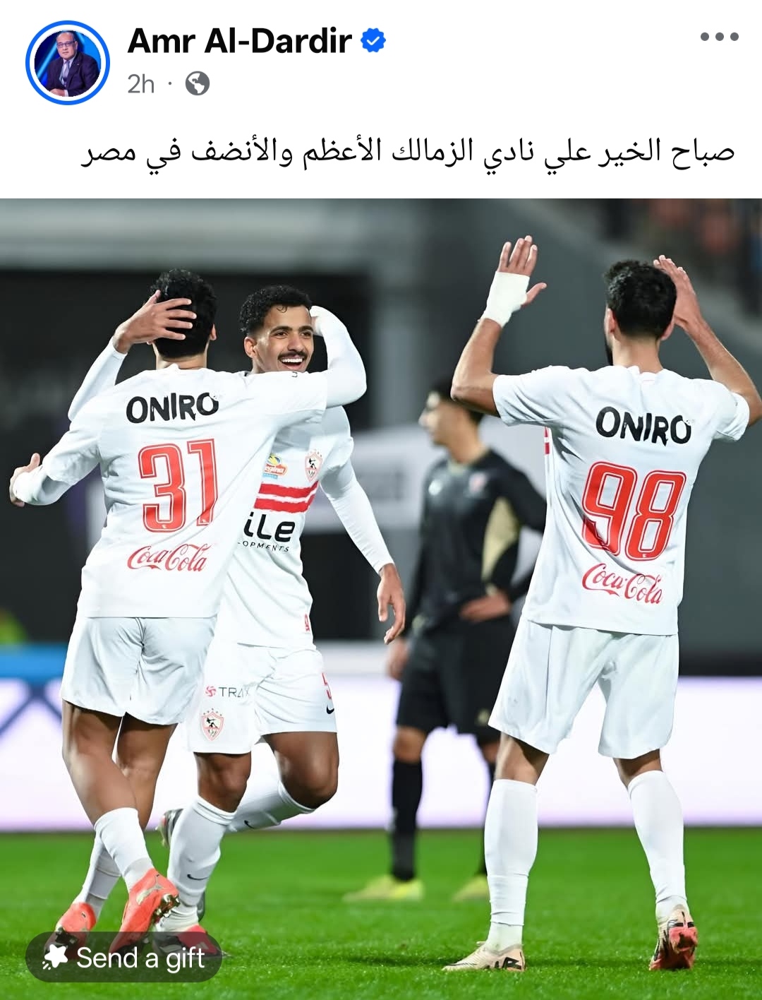 و كتب الدرديري:صباح الخير علي نادي الزمالك الأعظم والأنضف في مصر.