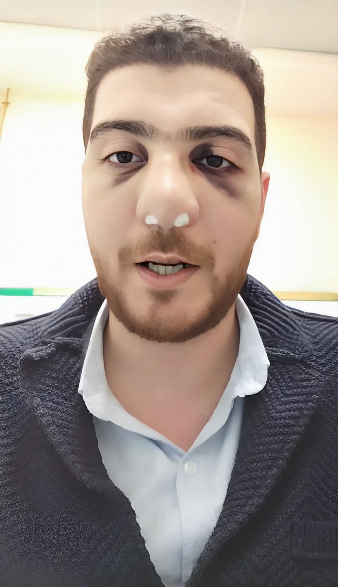 وتابع أنه تعرض لكسر في عظمتي الأنف والحاجز الانفي وسيقوم باجراء عملية غدا السبت.