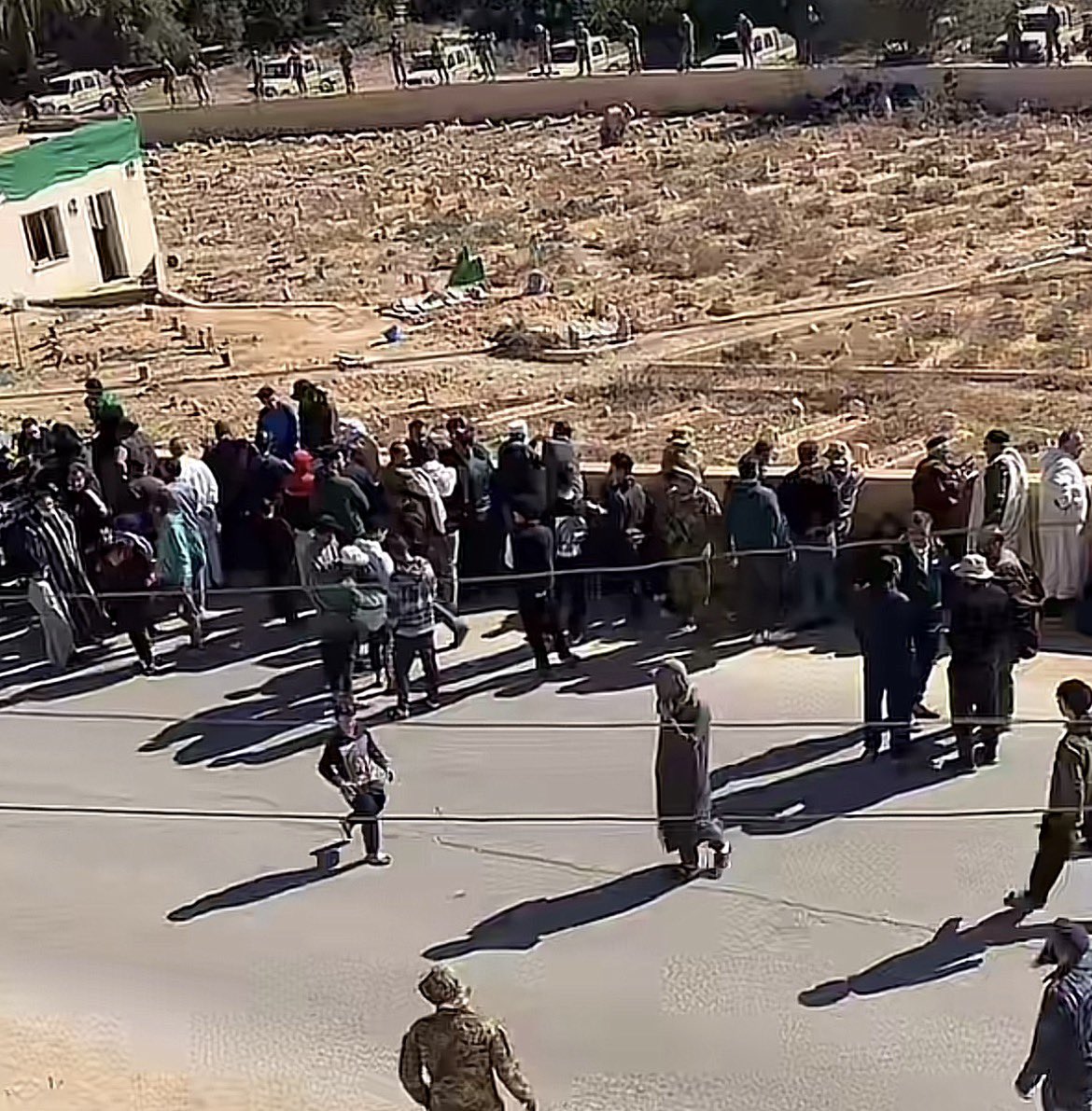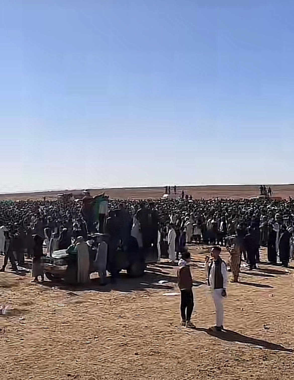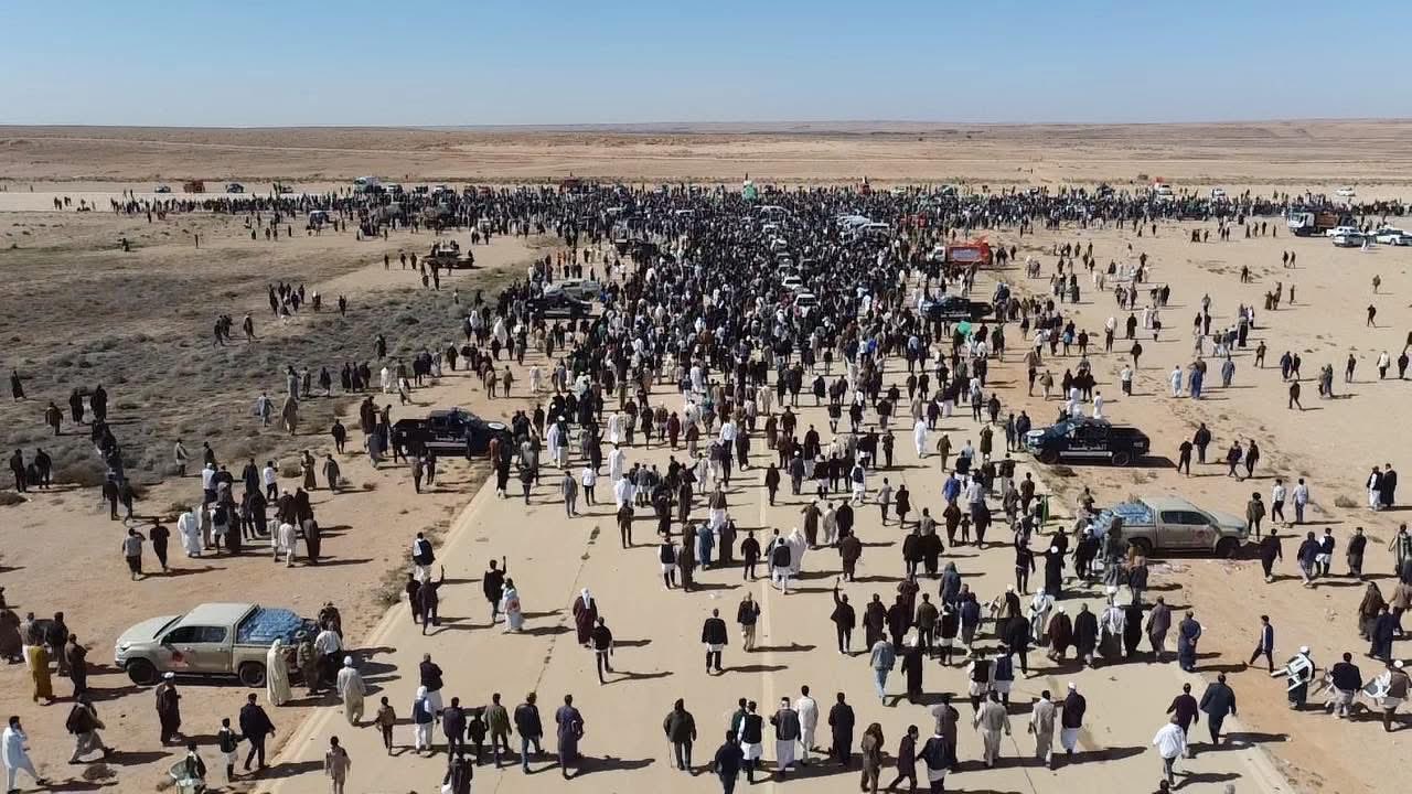 توافد المئات من الليبيين للمشاركة في مراسم تشييع جثمان سيف الإسلام القذافي نجعل الزعيم الليبي الراحل معمر القذافي إلى مثواه الاخر .