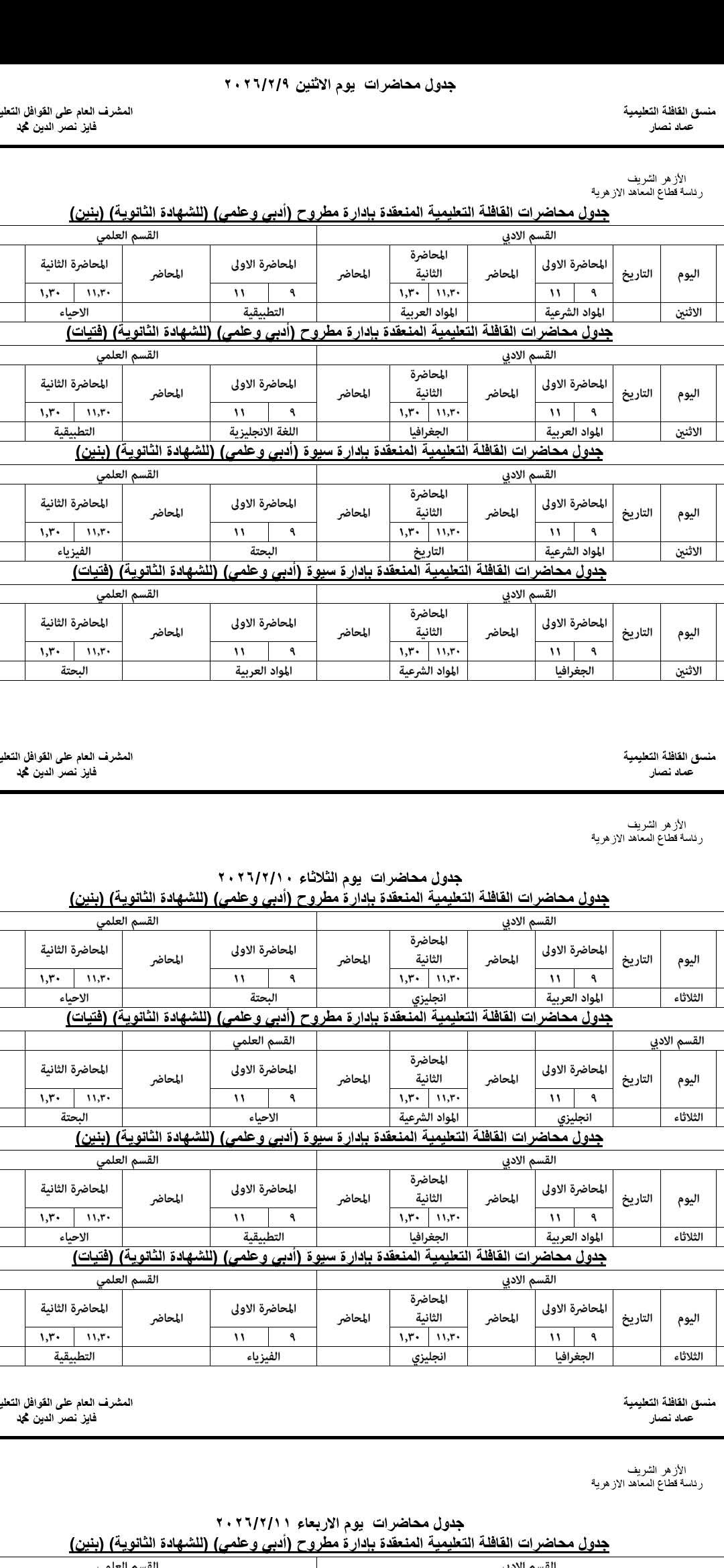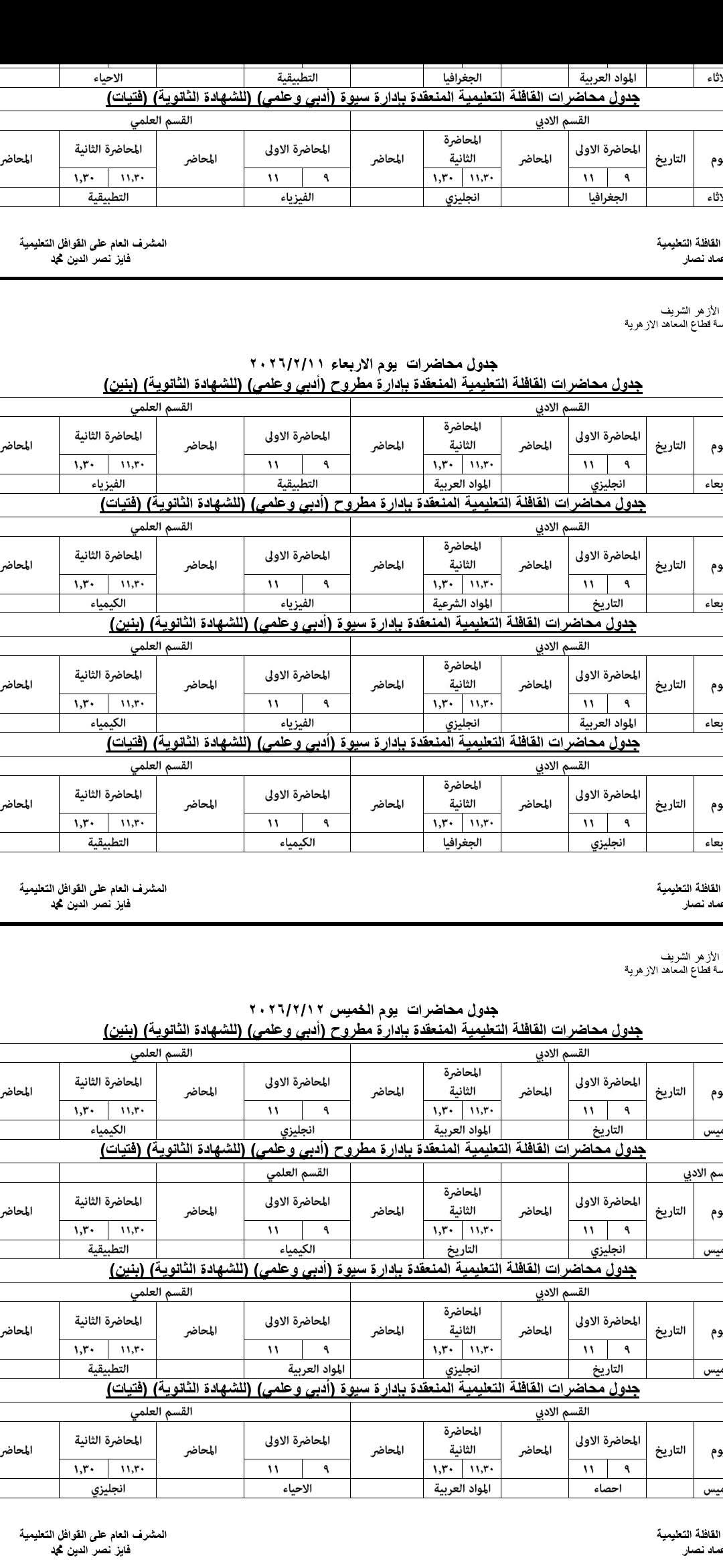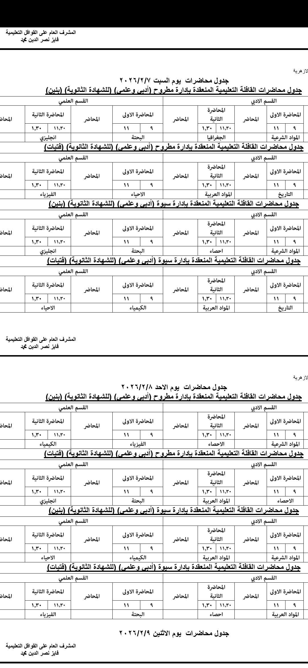 تنطلق غدا السبت فعاليات "قافلة الأزهر التعليمية" الكبرى لطلاب وطالبات الشهادة الثانوية بفرعيها (العام والأزهري) بمدينتي مرسى مطروح وسيوة، وذلك بمشاركة نخبة من مستشاري المواد الدراسية بقطاع المعاهد الأزهرية بالقاهرةبالتعاون والتنسيق المشترك مع مديرية التربية والتعليم بمطروح .