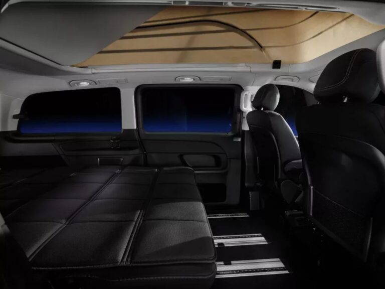 كما تم زيادة الارتفاع الداخلي للرأس بمقدار 10 ملم، مع إمكانية طي المقاعد الخلفية وتحويلها إلى سرير واسع بأبعاد 2.05 × 1.13 متر، ما يجعل الإقامة داخل السيارة أكثر عملية وراحة، ولم يقتصر الأمر عند هذا الحد بل جمعت مرسيدس بين الفخامة والتقنية.