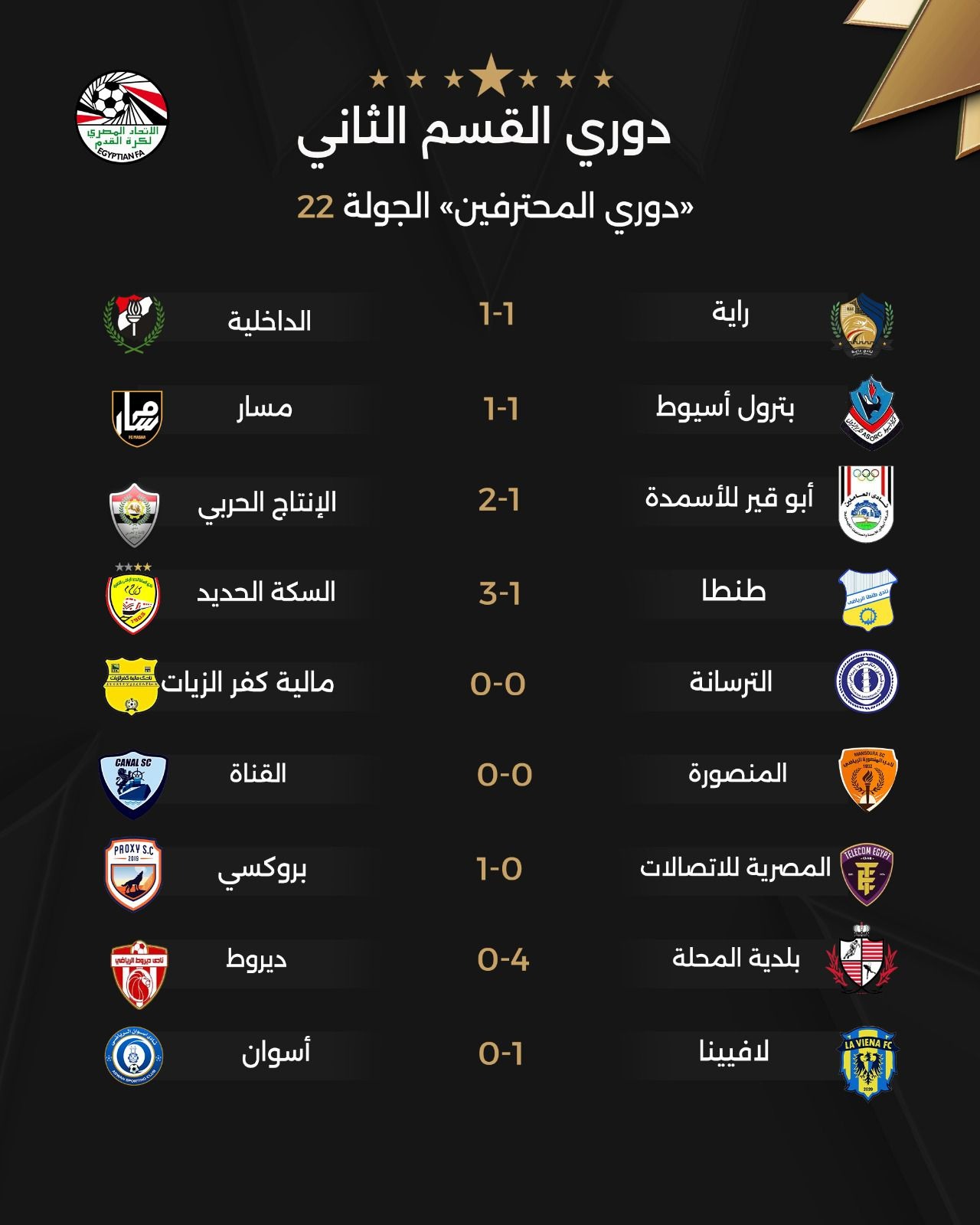 - لافيينا ضد أسوان: 1ـ0