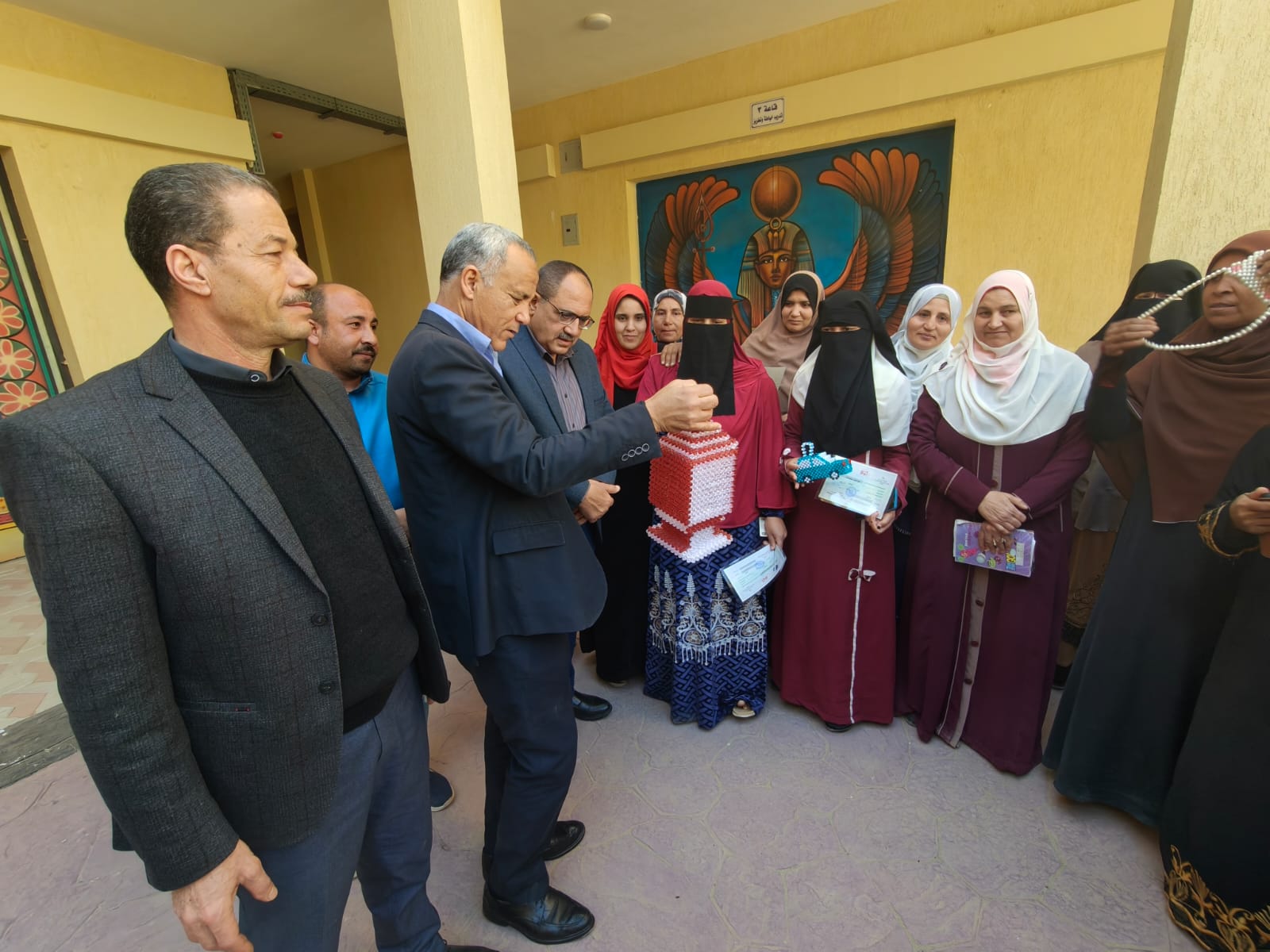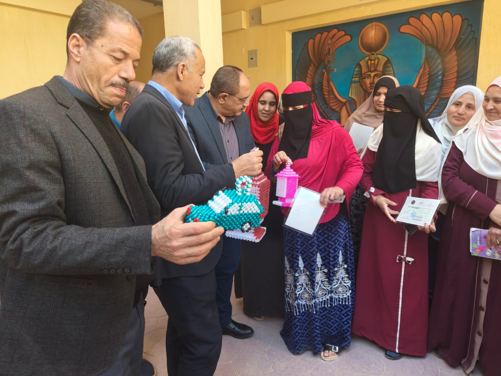 وذلك بحضور على يوسف رئيس مركز و مدينة الواسطى و اسامة وليم توفيق مدير عام الفرع ورئيس الوحده المحليه لقريه ميدوم ، ممدوح عبد العزيز مدير إدارة الواسطي لتعليم الكبار ، محمد بهاء الشريعي رئيس لجنة الاستكتاب بالفرع ، ايهاب عبد الحكم مدير العلاقات العامه والاعلام بالفرع ، و هبه مدير مركز التنمية بالقريه وذلك بمقر مركز التنمية بالقريه كما تابع الضيوف مهارات التمكين الاقتصادي التي يتم تدريب الدارسين عليها من اعمال خياطه ومنتجات يدويه " هاند ميد "