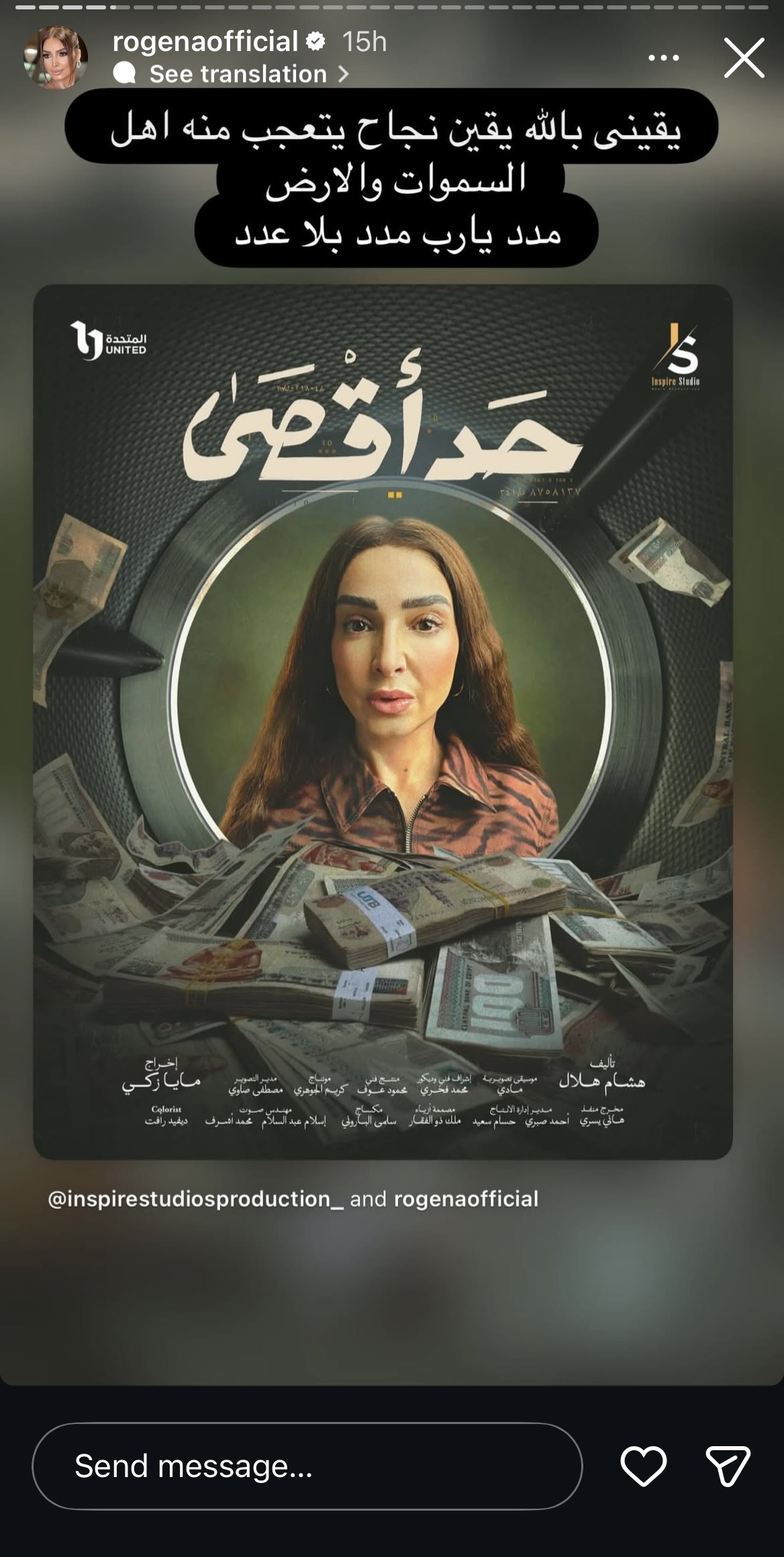 وكتبت روجينا عبر حسابها على انستجرام: “يقيني بالله نجاح يتعجب منه أهل السموات والأرض ”.