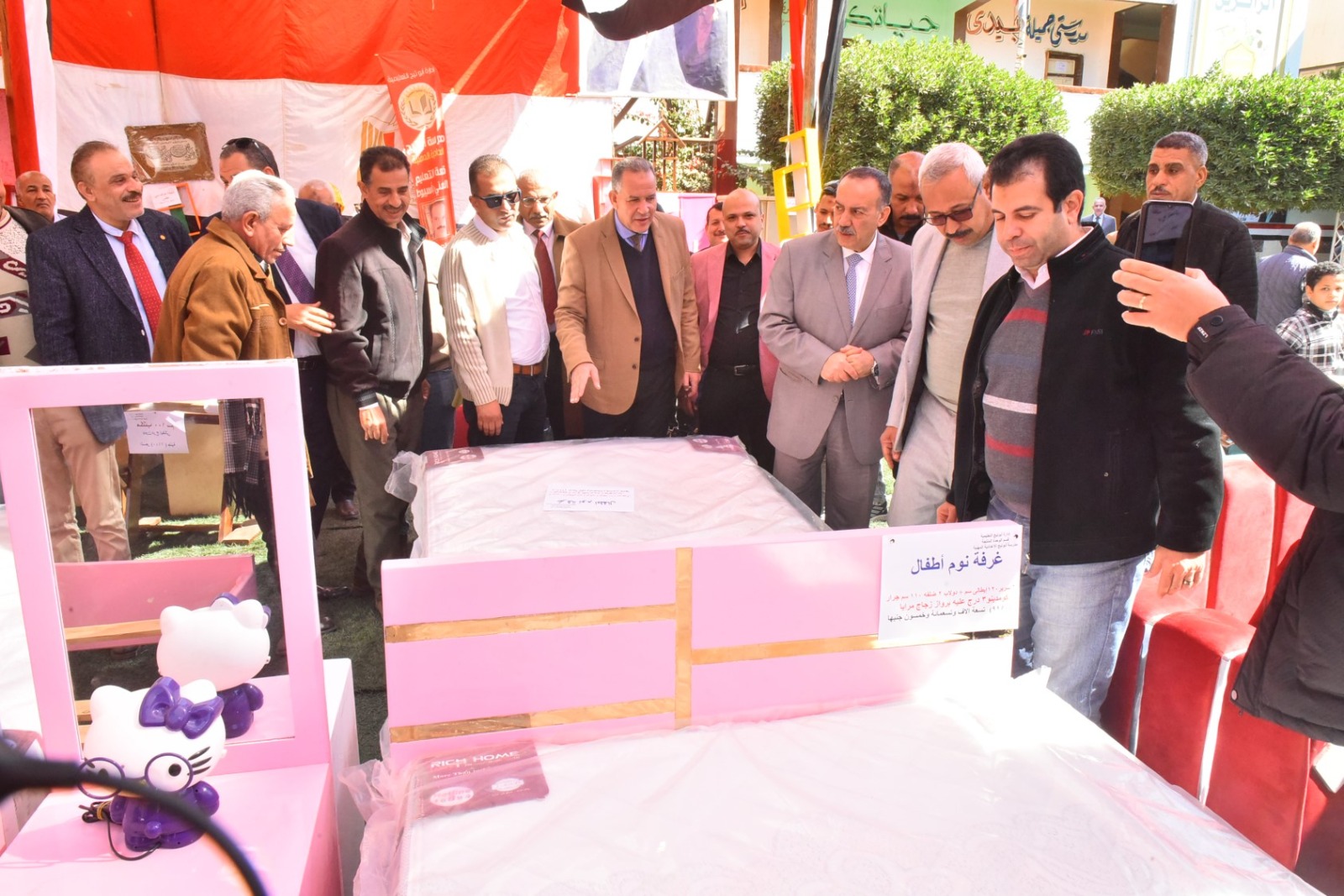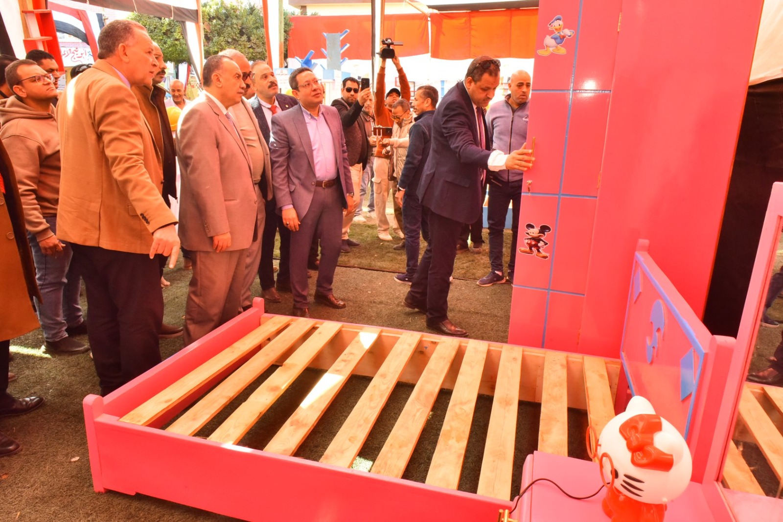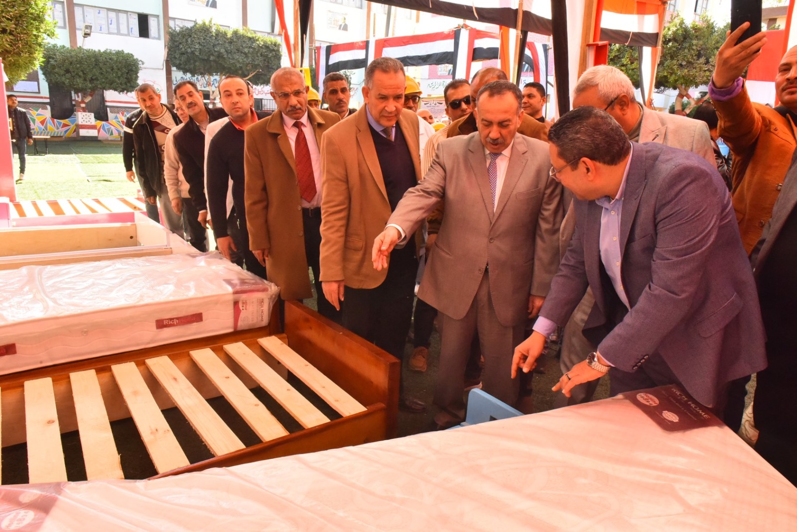 وقام محافظ أسيوط بقص شريط افتتاح المعرض، ثم تفقد أقسامه المختلفة، والتي ضمت مجموعة متنوعة من المنتجات المصنعة من الأخشاب المعاد تدويرها، شملت غرف نوم، وأثاثًا منزليًا، ومكاتب، وترابيزات، وكراسي، وانتريهات، ومشغولات خشبية وأعمال ديكور، بالإضافة إلى انتيكات وخلايا نحل، تم تنفيذها بالكامل بأيدي طلاب المدرسة وتحت إشراف المعلمين والمدربين المتخصصين بالمجال الصناعي.