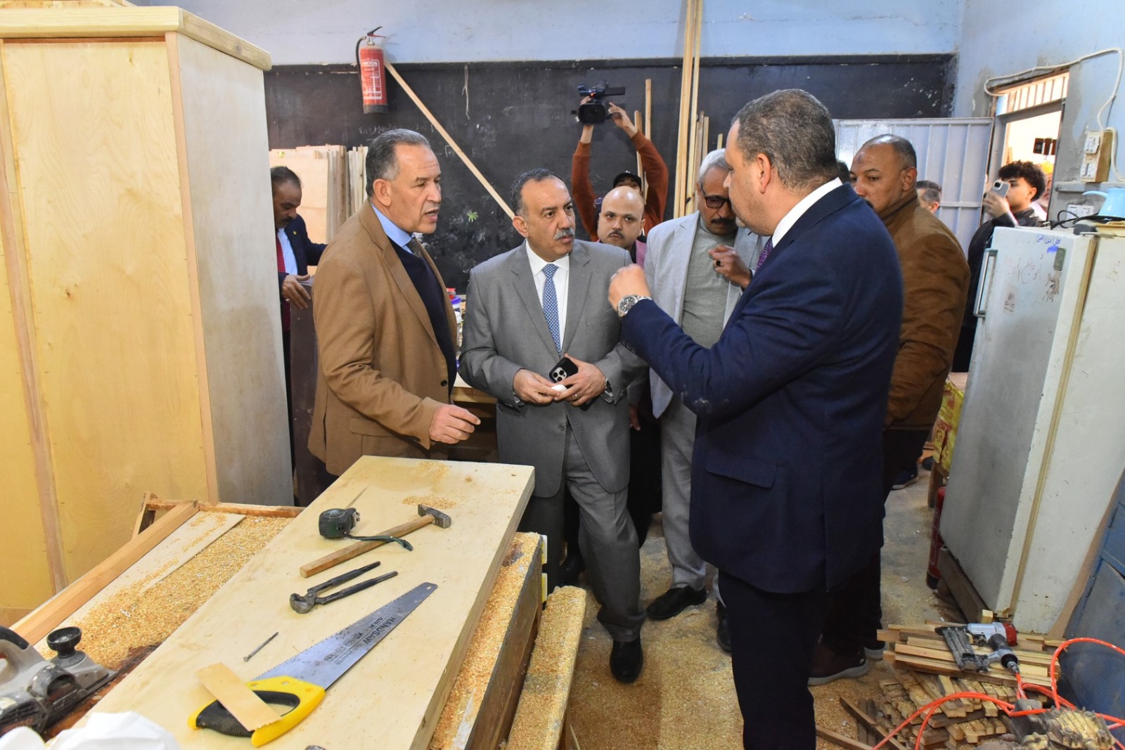 وعلى هامش الافتتاح، تابع اللواء دكتور هشام أبو النصر سير العمل داخل ورش المجال الصناعي بالمدرسة، واطلع على مراحل إعادة تدوير الرواكد الخشبية، بدءًا من الفرز والتجهيز وحتى التصنيع النهائي باستخدام المعدات الحديثة، مؤكدًا أهمية تحويل المدارس الفنية إلى وحدات إنتاجية فاعلة.