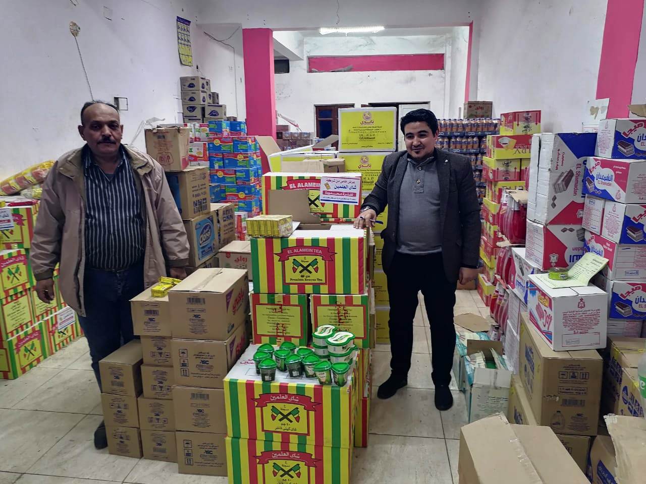 و١٠ طن نخالة خشنة، ٢ طن اسمنت، ٢ طن ذرة صفراء، ٢ طن سكر تمويني به نقص في الاوزان، ١٢٠٠ عبوة منظفات مختلفة الاحجام، وقد تم اتخاذ كافة الإجراءات القانونية اللازمة والعرض علي النيابة العامة لأعمال شؤنها فيما ورد من مخالفات.