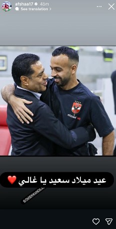 وحرص أفشة على تهنئة طارق قنديل بعيد ميلاده، ذلك عبر ستوري حسابه على انستجرام، وكتب: “عيد ميلاد سعيد يا غالي”.