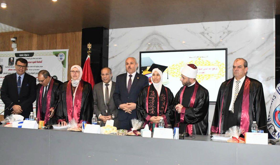 وتكوَّنت لجنة الإشراف من الدكتور حسنين السعيد حسنين – أستاذ الدراسات الإسلامية والوكيل السابق لمعهد الدراسات الأفروآسيوية بجامعة قناة السويس، والدكتورة فاطمة محمد منصور صقر – أستاذ الدراسات الإسلامية المساعد بالمعهد ذاته، فيما ضمّت لجنة المناقشة الدكتور أسامة الأزهري – وزير الأوقاف، والدكتور حسن السيد حامد خطاب – أستاذ الدراسات الإسلامية بكلية الآداب جامعة المنوفية.