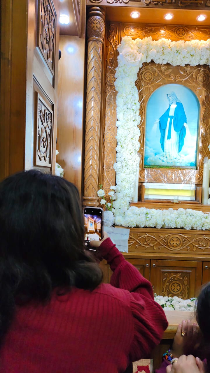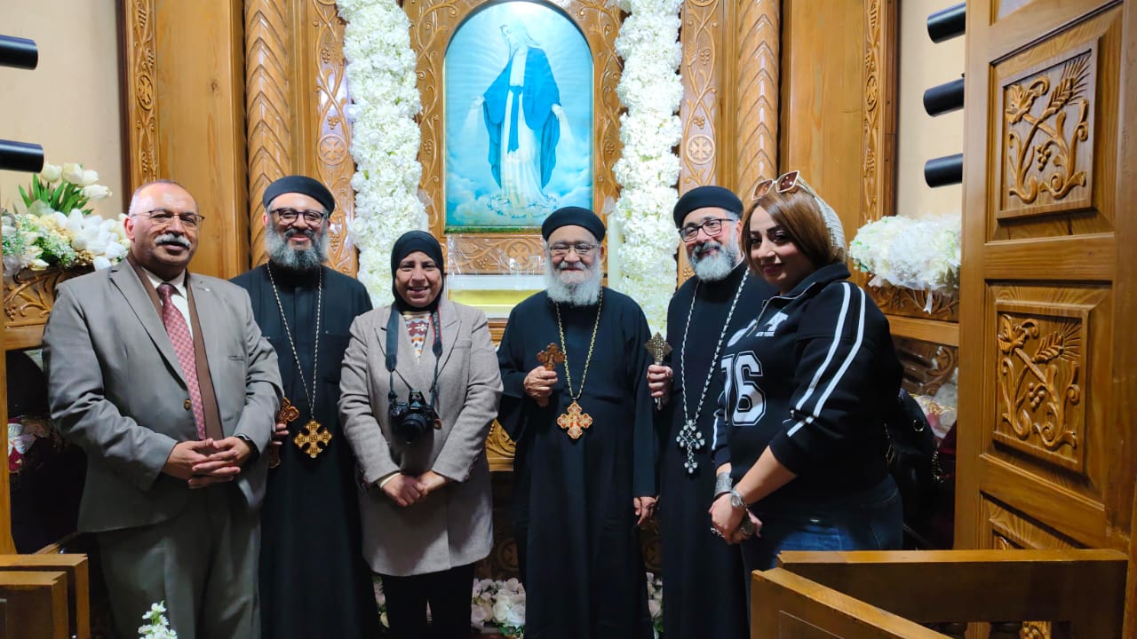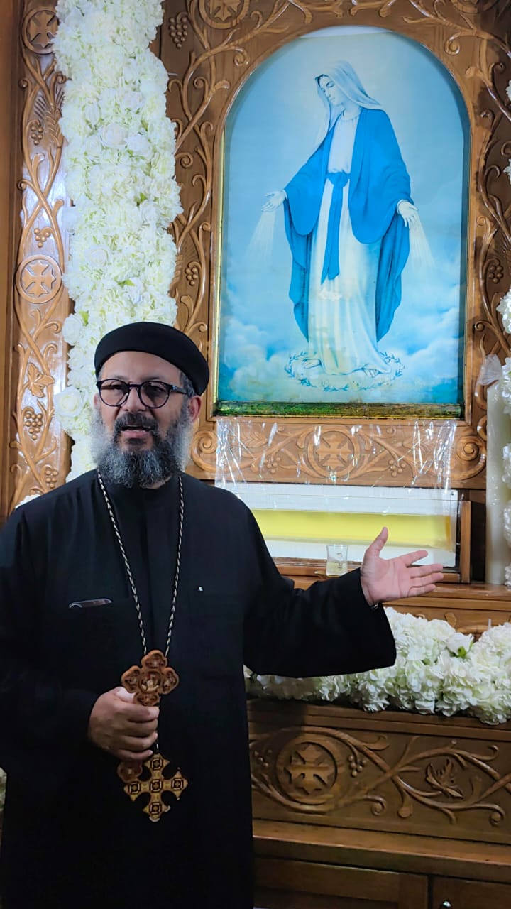 وكان في استقبال الجميع كهنة الكنيسة وهم القمص بولا سعد ، والقس بيمن صابر ، والقس أرميا فهمي ، والقس بيشوي مجدي ، والقس أرساني منير ، حيث تجمع كل الحضور من المسيحيين حول صورة السيدة العذراء مريم وقاموا بترديد الترانيم والتماجيد الخاصة بالسيدة العذراء مريم ومنها " السلام لك يا مريم" ابتهالا بنزول الزيت .
