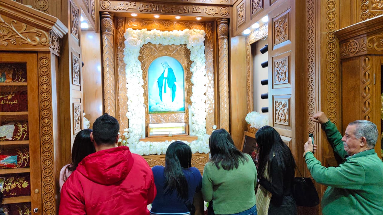 وتوافد الأخوة المسيحيون من جميع الفئات رجال وسيدات و كبار وصغار من مختلف المحافظات وخارج مصر أيضا لزيارة الكنيسة للتبرك بالصورة، التى ينساب منها الزيت.