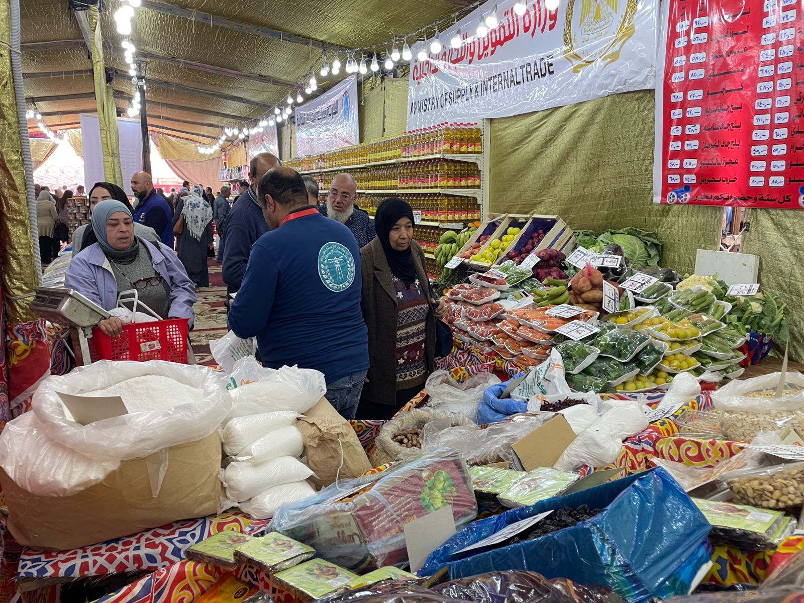 ويضم المعرض جميع السلع الغذائية الأساسية، من السكر، والأرز، والمكرونات، والزيوت، والسمن، والدقيق، إلى جانب البيض، واللحوم، والدواجن، وذلك بأسعار مخفّضة تصل نسبة التخفيضات بها إلى نحو 30%، بما يسهم في تخفيف الأعباء المعيشية عن كاهل المواطنين داخل محافظة الإسكندرية.