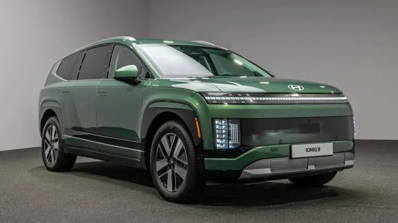 ويحمل تصميم هيونداي IONIQ 9 ملامح عصرية تتماشى مع لغة التصميم الخاصة بسلسلة IONIQ، حيث تأتي الواجهة الأمامية بخطوط حادة وشريط إضاءة عريض بتصميم البيكسل، وهو عنصر بات علامة مميزة لسيارات هيونداي الكهربائية.