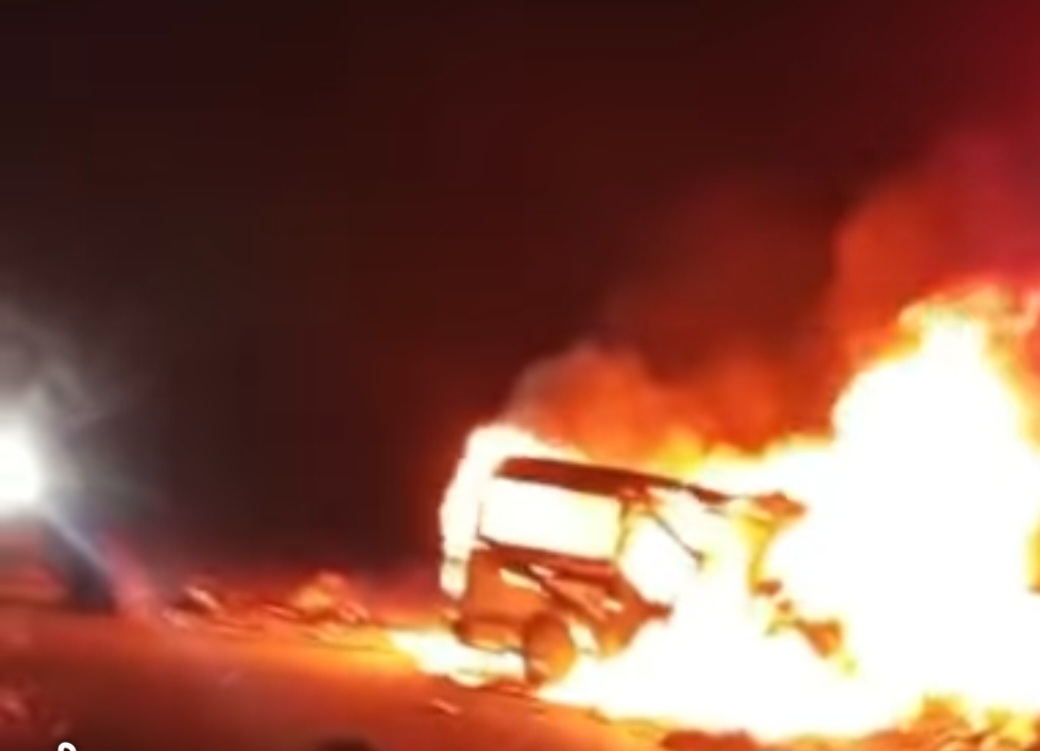 وكانت الأجهزة الأمنية قد تلقت بلاغًا يفيد بوقوع حادث تصادم بين سيارتين على الطريق، وعلى الفور انتقلت قوات الشرطة وعدد من سيارات الإسعاف إلى موقع الحادث.