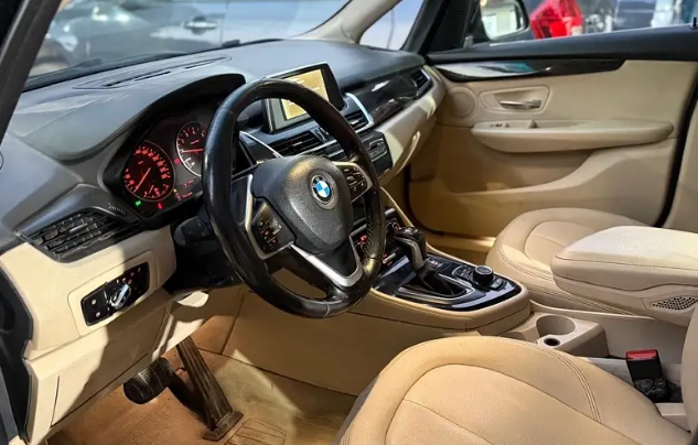 زودت سيارة بي إم دبليو 218 i موديل 2015 بالعديد من المميزات من ضمنها، كونسول وسطي، وحوامل أكواب، وفرش مقاعد من الجلد، وبها عدادات للسرعة والحرارة والوقود، وبها درج تخزين أمامي، وبها تكييف، وبها مخارج تكييف أمامية، وبها مساحات إضافية بالأبواب الأمامية للتخزين، وبها زجاج كهربائي، وبها أذرعة تم تثبيتها علي جانبي عجلة القيادة للتحكم في عمل الإشارات والمساحات، وبها اضاءة داخلية للقراءة، وبها أحزمة أمان، ومراه داخلية للرؤية .