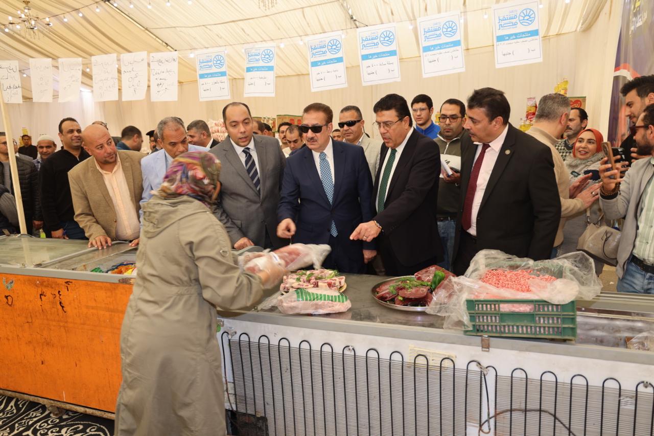 حيث تفقد المحافظ أجنحة المعرض والذي يضم منتجات ( زيت - مكرونة - جبنة - سكر- أرز – عدس - سمنة - لحوم – فراخ - ياميش - تين - زبيب - تمور - جوز الهند - دقيق - ألبان -منظفات ) وغيرها من المنتجات الضرورية الهامة ، وحرص المحافظ على الاطمئنان على جودة المنتجات وتوافر كافة السلع والتعرف على قوائم الأسعار للتأكد من نسب التخفيضات مقارنة عن مثيلاتها بالأسواق ، واطمأن المحافظ من الأهالي على الأسعار وجودة المعروضات ، موجهاً مديريات الطب البيطرى و التموين بالمتابعة المستمرة للحالة العامة للمعارض وزيادة الكميات المعروضة من السلع لإتاحتها بصفة مستمرة أمام المواطنين لتخفيف العبء عن كاهلهم .