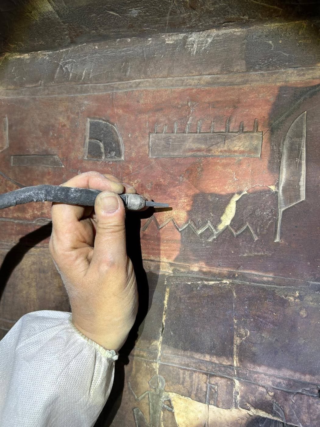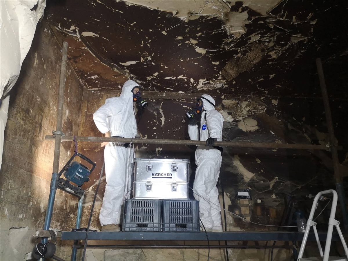 أنهت فرق الترميم المتخصصة تنظيف جدران القاعة الثانية من مقبرة بادي آمون أوبت بالأقصر، باستخدام أحدث التقنيات العلمية "ميكرو أبراسيون"، حفاظاً على الآثر وقيمتها ودون التعرض لأى مخاطر.