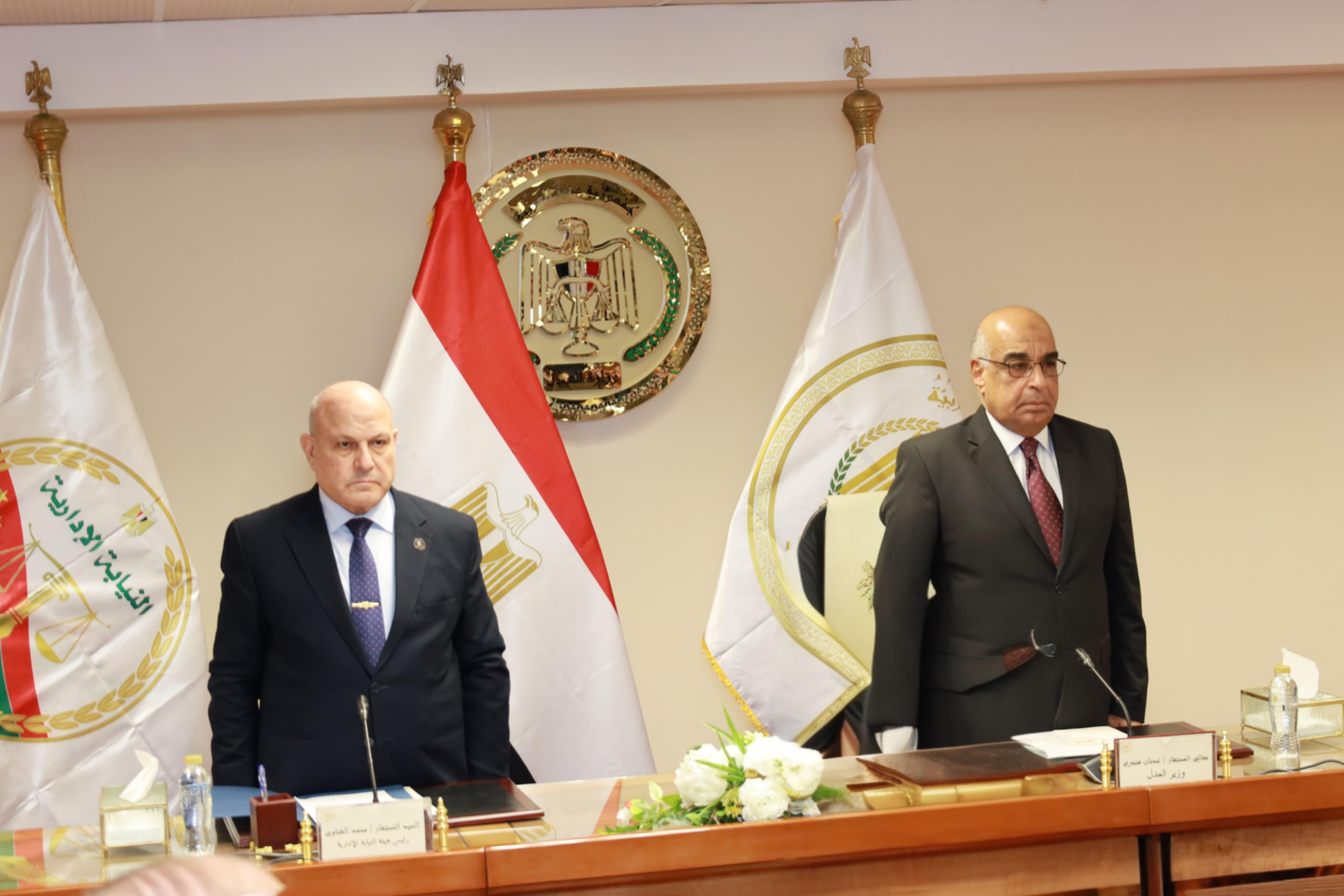 ورحب المستشار عدنان فنجري، وزير العدل، في كلمته بالمستشار محمد الشناوي رئيس هيئة النيابة الإدارية، مطالبا معاوني النيابة الإدارية الجدد بضرورة التمسك بالتقاليد القضائية، وأن يكونوا على قدر المسؤولية لحمل رسالة العدالة السامية، وحماية المال العام ومكافحة الفساد.
