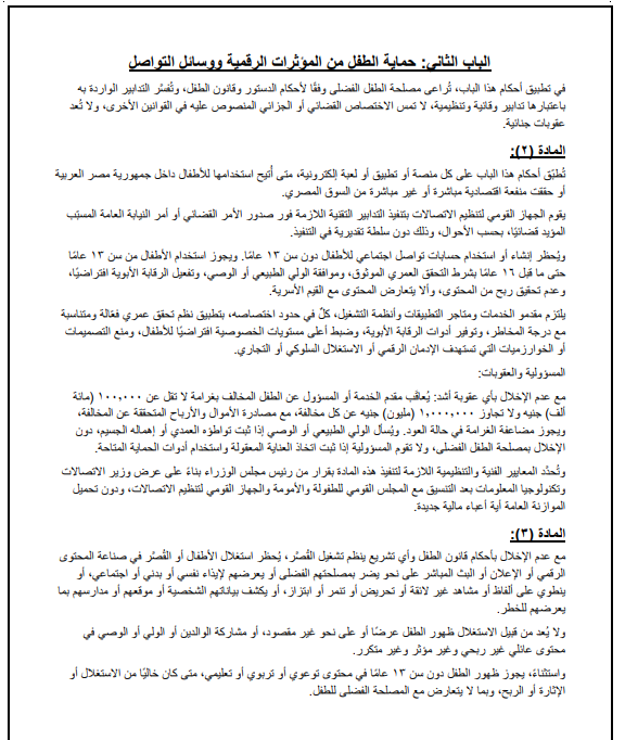وأشار أمين سر لجنة الصناعة إلى أن المشروع يبعث برسالة واضحة مفادها أن الدولة المصرية لن تسمح بتحويل الأطفال إلى سلعة رقمية أو أدوات لتحقيق أرباح على حساب سلامتهم النفسية والجسدية، مؤكدًا أن القانون يواكب التطور التكنولوجي ويحمي المجتمع دون المساس بالحريات المشروعة.