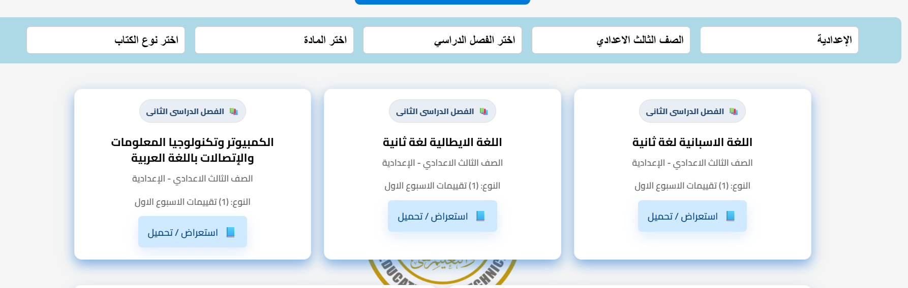 - حدد المرحلة ( الإبتدائية - الإعدادية - الثانوية العامة )