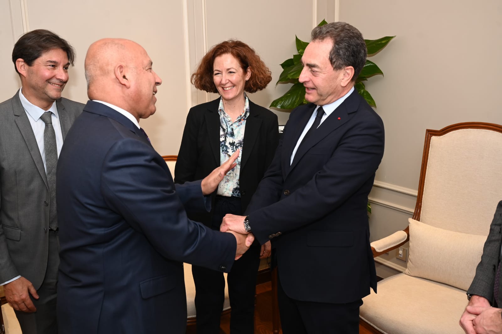 التقى الفريق مهندس/ كامل الوزير نائب رئيس مجلس الوزراء للتنمية الصناعية وزير الصناعة والنقل إيريك شوفالييه السفير الفرنسي والسيدة / ماجالي سيزانا، رئيس قسم الشئون الثنائية وتدويل الشركات بالإدارة العامة للخزانة التابعة لوزارة الاقتصاد والمالية والصناعة بفرنسا لمتابعة آخر مستجدات مشروعات النقل المشتركة الجاري تنفيذها وذلك بحضور المهندس/ وجدي رضوان نائب وزير النقل للسكك الحديدية والجر الكهربائي و الدكتور / طارق جويلي رئيس الهيئة القومية للانفاق والسفير/ أحمد رزق مستشار وزير النقل للتعاون الدولي والمهندس / وائل نعيم مساعد وزير النقل.