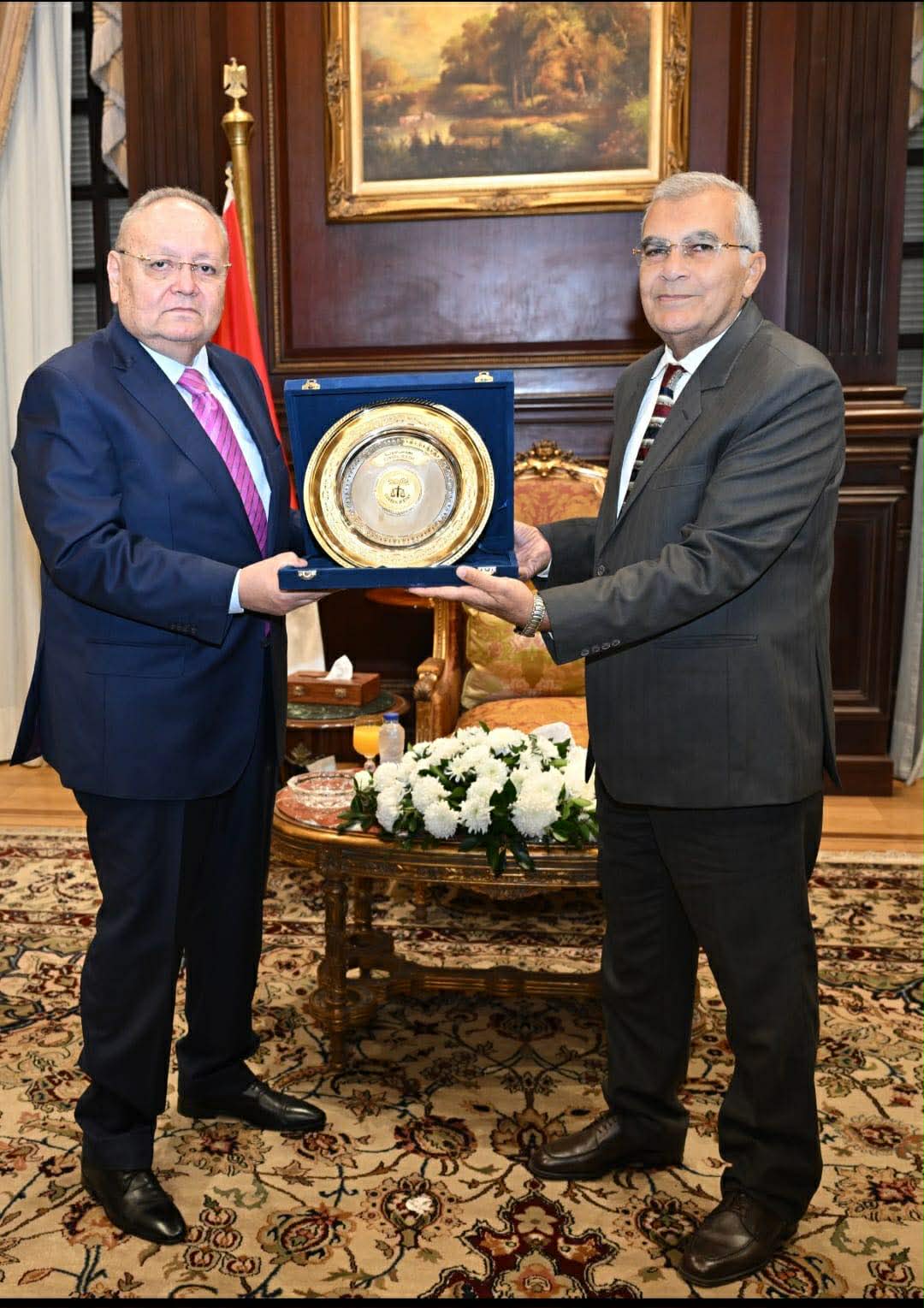 استقبل المستشار عصام فريد رئيس مجلس الشيوخ اليوم المستشار أسامة شلبي رئيس مجلس الدولة يرافقه وفد رفيع المستوى.