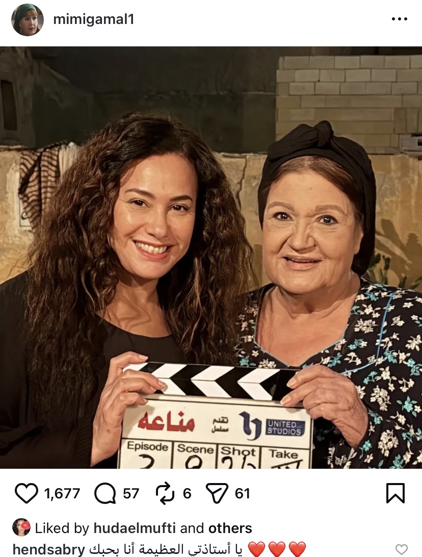 ونشرت ميمي جمال عبر حسابها على موقع التواصل الإجتماعي إنستغرام صورة تجمعها مع هند صبري من كواليس التصوير، لترد الأخيرة عليها بكلمات مليئة بالاحترام و المودة قائلة: يا أستاذتي العظيمة أنا بحبك، معبرة عن تقديرها الكبير لميمي جمال.