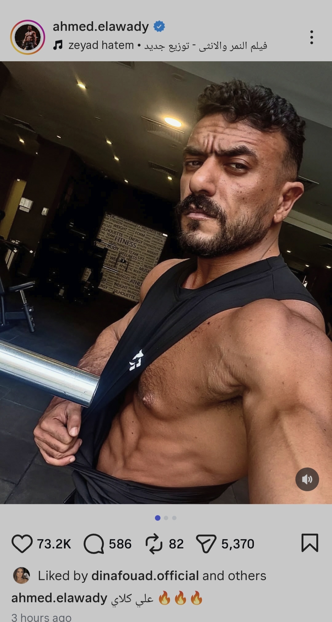 و ظهر العوضي و هو يستعرض لياقته البدنية من الجيم، وعلق كاتبا:علي كلاي.
