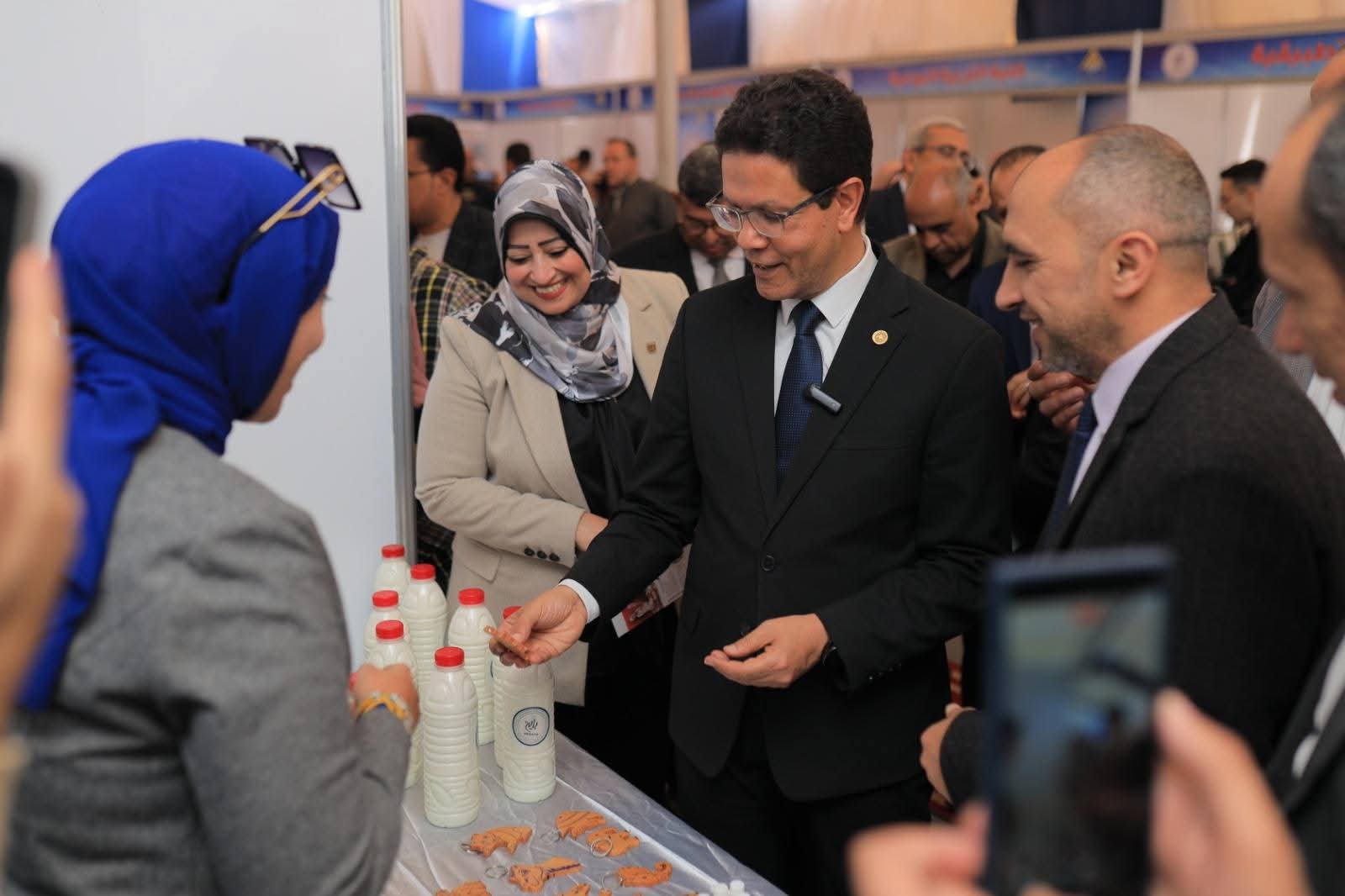 افتتح الدكتور ناصر الجيزاوي رئيس جامعة بنها ، يرافقه الدكتورة جيهان عبد الهادي نائب رئيس الجامعة لشئون الدراسات العليا والبحوث ، والدكتور طه عاشور نائب رئيس الجامعة لشئون خدمة المجتمع وتنمية البيئة ، معرض "صنع في جامعة بنها" والذي نظمه قطاع خدمة المجتمع وتنمية البيئة بالجامعة.