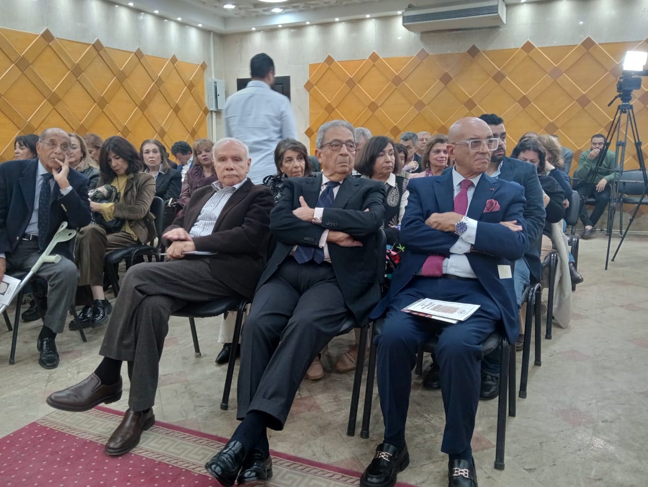 بحضور كوكبة من رجال الثقافة والأدب والفن والسياسة، فى مقدمتهم : الدكتور عمرو موسى الأمين العام لجامعة الدول العربية الأسبق، والأستاذ الدكتور عماد ابوغازى وزير الثقافة الأسبق، والدكتور حلمى النمنم وزير الثقافة الأسبق، والكاتب الكبير محمد سلماوى، والأستاذ إبراهيم المعلم، والأستاذ صلاح دياب، والفنان القدير حسين فهمى، والدكتور أنور مغيث، والدكتور زياد بهاء الدين، والسفيرة ليلى بهاء الدين، والدكتور هانى أبوالحسن سلام، والدكتورة جليلة القاضى، والدكتور حسن البيلاوى، والمهندس علاء سويف .