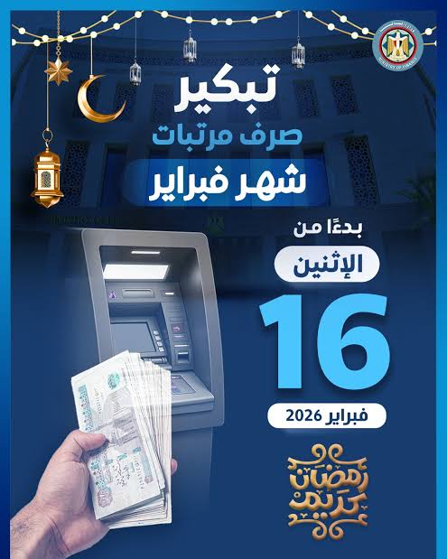 - صرف مرتبات شهر فبراير 2026 عبر ماكينات الصرف الآلى «ATM».