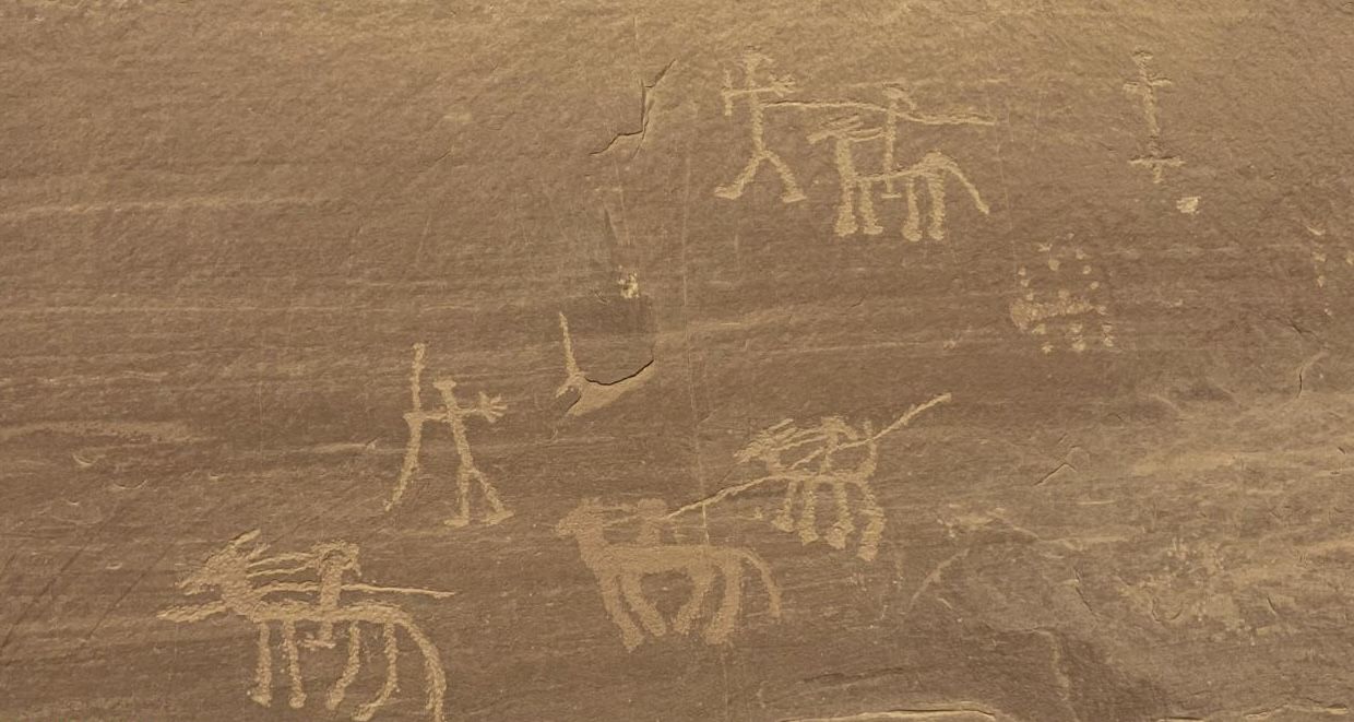 وتشمل مجموعات أخرى من النقوش مناظر لجمال وخيول بأشكال متعددة يمتطيها أشخاص يحملون أدوات الحرب، ويرافق بعضها كتابات نبطية، بما يشير إلى فترات تاريخية لاحقة شهدت تفاعلات حضارية وثقافية متنوعة بالمنطقة.
