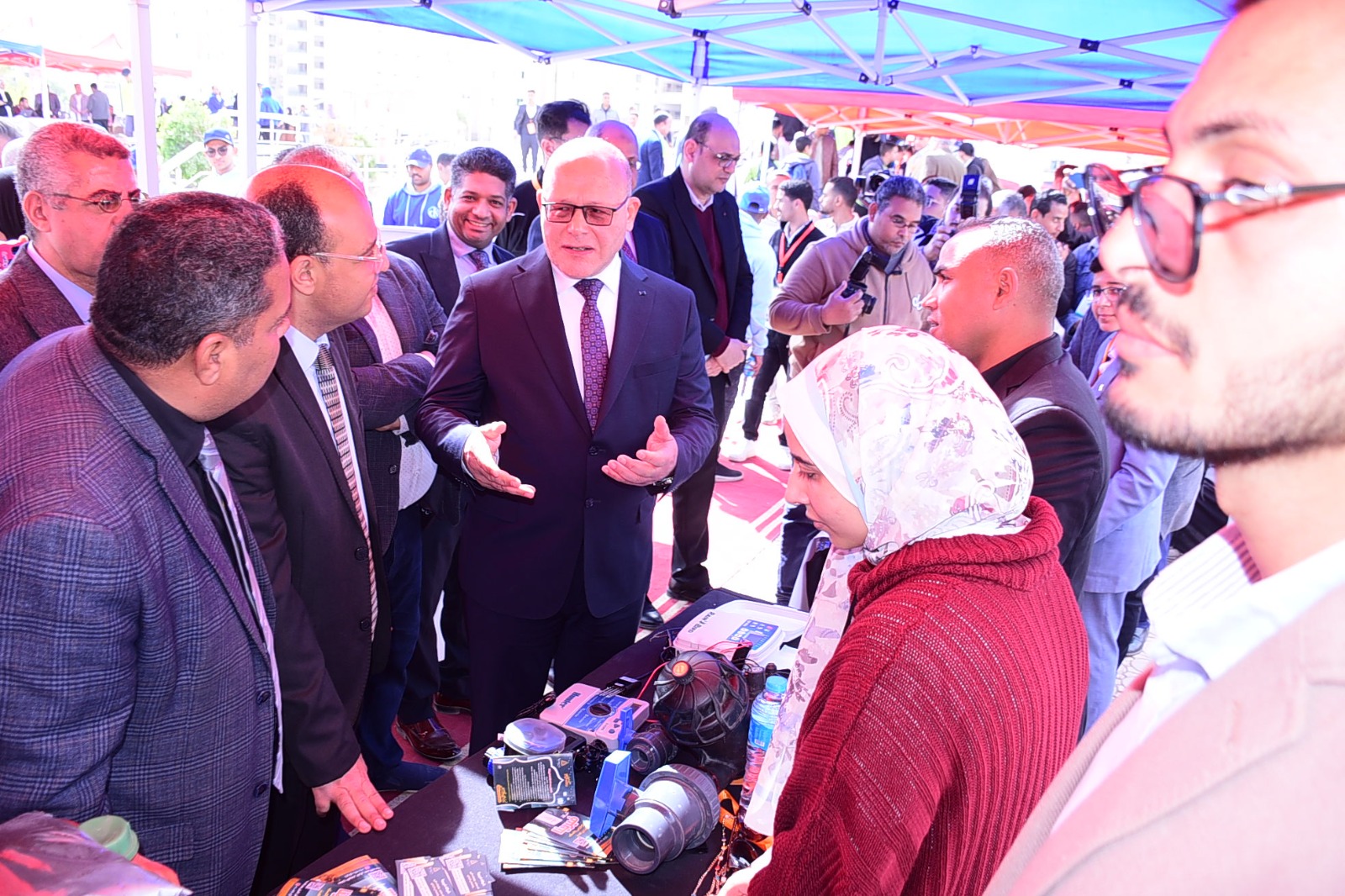 واشاد بالتكامل بين الجامعة وقطاع الصناعة، من خلال مشاركة ٥٥ شركة توفر ١٢٩ فرصة عمل للشباب. فهذا هو النموذج الذي نسعى إليه دائمًا، وهو تعليم يرتبط بسوق العمل، وبحث علمي يخدم التنمية، وشباب يجد الفرصة الحقيقية ليبدع وينتج ويساهم في بناء وطنه.