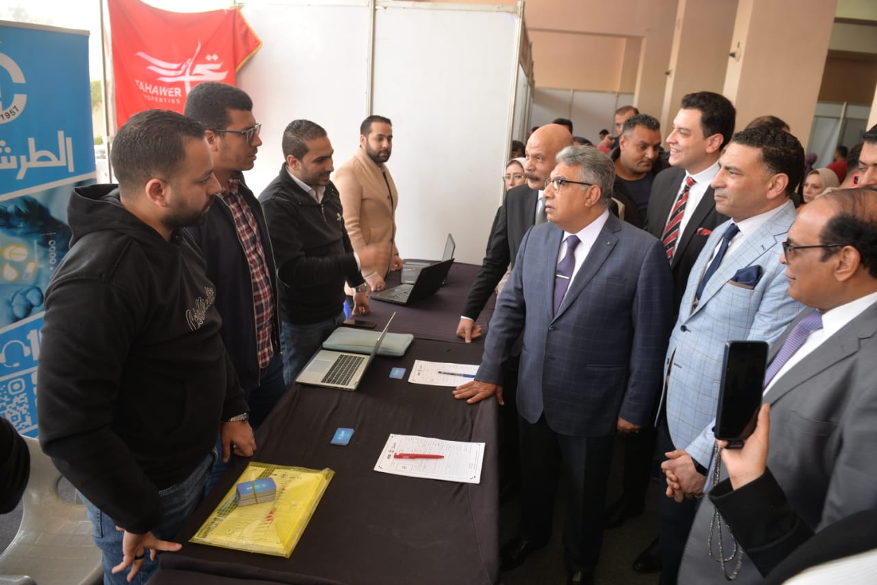 وقام المحافظ بجولة تفقدية داخل أروقة الملتقى، الذي يشارك فيه 29 شركة من كبرى شركات القطاع الخاص في مختلف المجالات، واطلع خلالها على طبيعة الوظائف المطروحة، ومتطلبات الشركات من التخصصات، واستمع إلى شرح من مسؤولي الشركات المشاركة حول مجالات عملهم وفرص التدريب المتاحة.