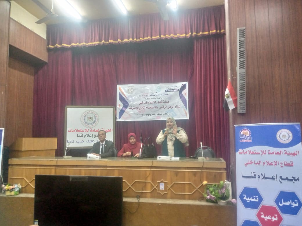 نظم مجمع إعلام قنا، اليوم الخميس، ندوة بعنوان " مواقع التواصل الاجتماعي بين الحرية والمسئولية "، ضمن حملة قطاع الإعلام الداخلى بالهيئة العامة للاستعلامات، لبناء الوعى الرقمى والاستخدام الآمن للإنترنت، تحت شعار "حمايتهم واجبنا"، بإشراف الدكتور أحمد يحيي، رئيس القطاع.