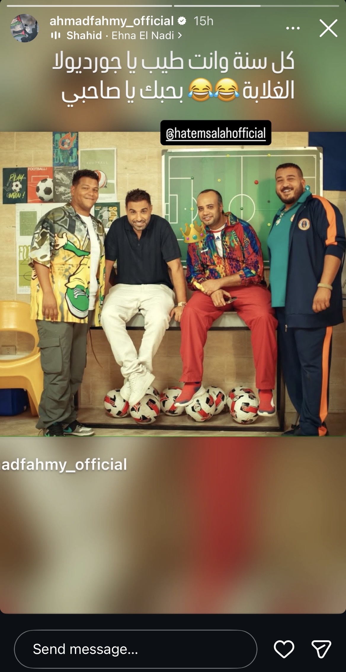 وشارك أحمد فهمي صورة تجمعه بحاتم صلاح، وعلق عليها: “كل سنة وانت طيب يا جوارديولا الغلابة بحبك طا صاحبي”.