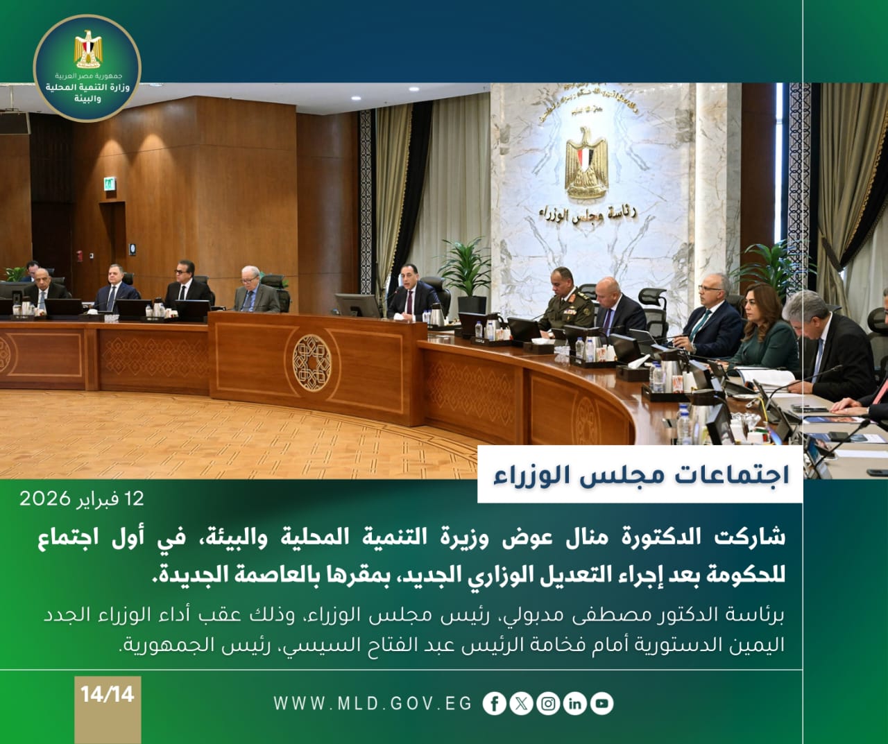 كما شاركت الدكتورة منال عوض وزيرة التنمية المحلية والبيئة في أول اجتماع للحكومة بعد إجراء التعديل الوزاري الجديد، بمقرها بالعاصمة الجديدة، برئاسة الدكتور مصطفى مدبولي، رئيس مجلس الوزراء، وذلك عقب أداء الوزراء الجدد اليمين الدستورية أمام فخامة الرئيس عبدالفتاح السيسي، رئيس الجمهورية.
