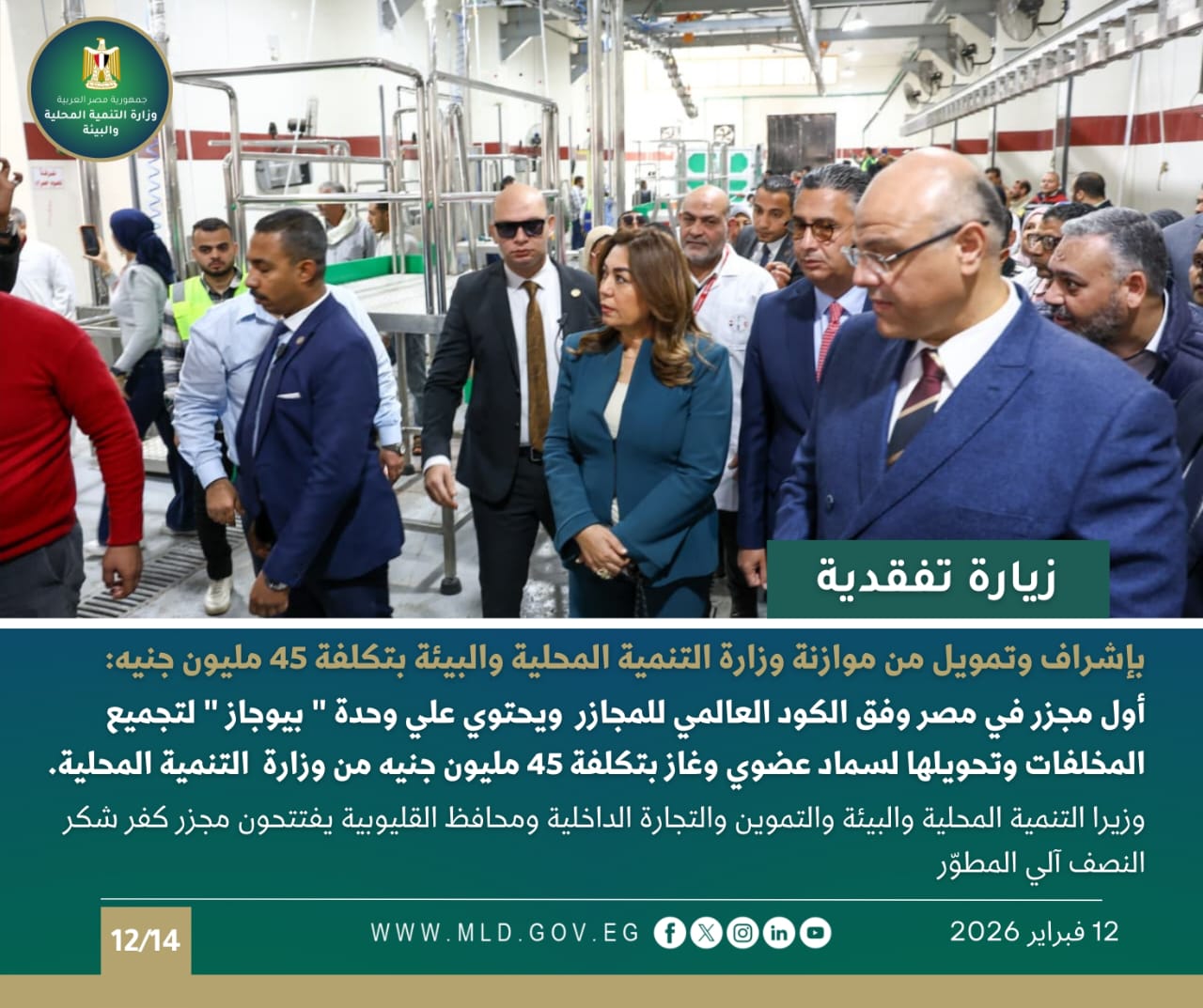 وافتتحت الدكتورة منال عوض وزيرة التنمية المحلية والبيئة ، والدكتور شريف فاروق وزير التموين والتجارة الداخلية، والمهندس أيمن عطية، محافظ القليوبية، أعمال التطوير الشامل لمجزر كفر شكر "النصف آلي" بتكلفة إجمالية تقدر بحوالي 45 مليون جنيه ضمن موازنة وزارة التنمية المحلية وتحت إشراف الوزارة في إطار تنفيذ المشروع القومي لتطوير ورفع كفاءة المجازر الحكومية بجميع المحافظات .